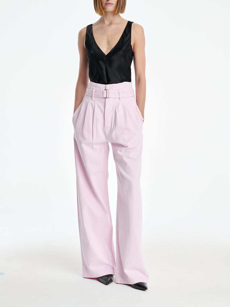 AGOLDE x MARIA MCMANUS Corset Wide Leg Jean in Stone Wash Powder Pink