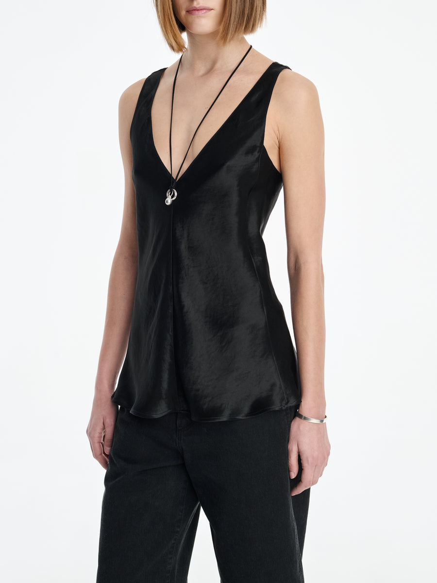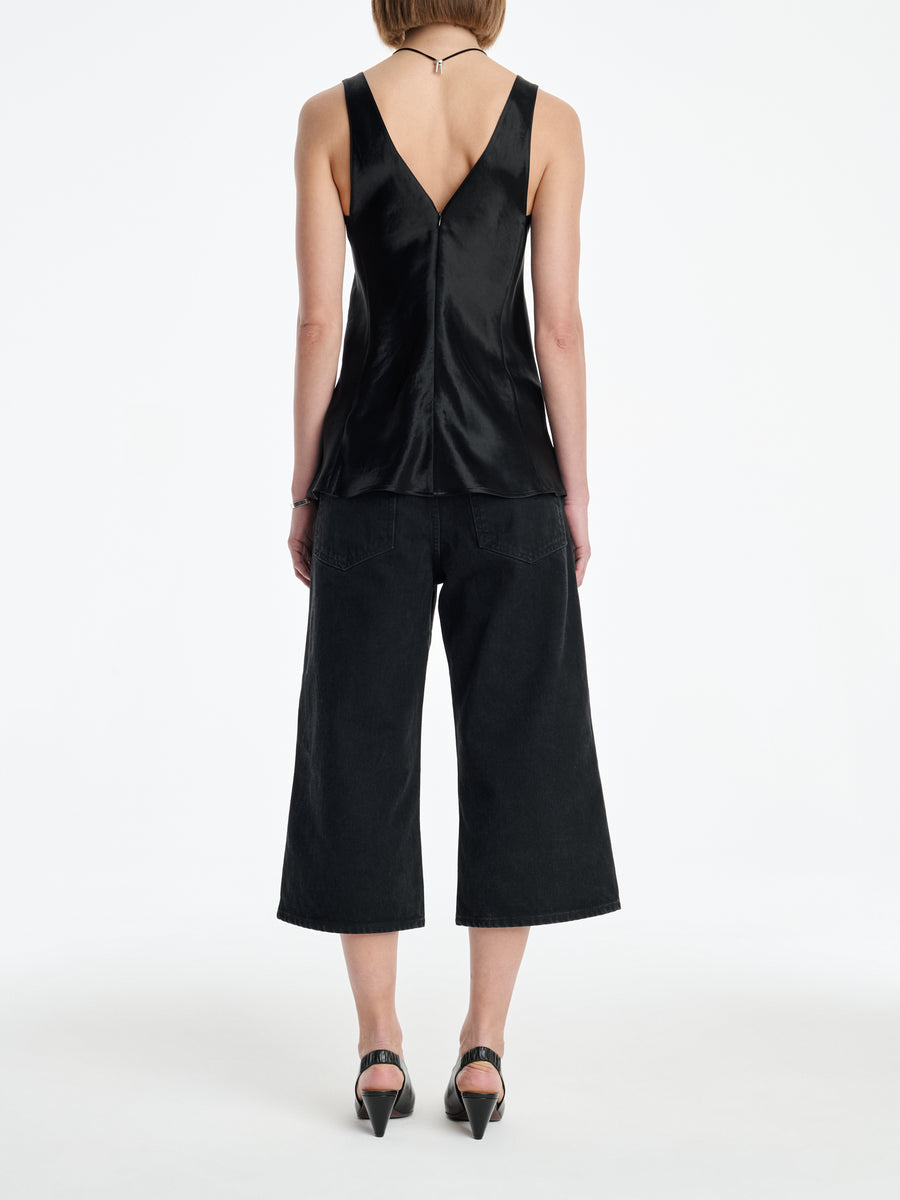 The Deep V Tunic is cut on the bias for a flattering, easy fit, with a deep v neck and back and invisible back zipper. It is cut in a Japanese renewable sateen.