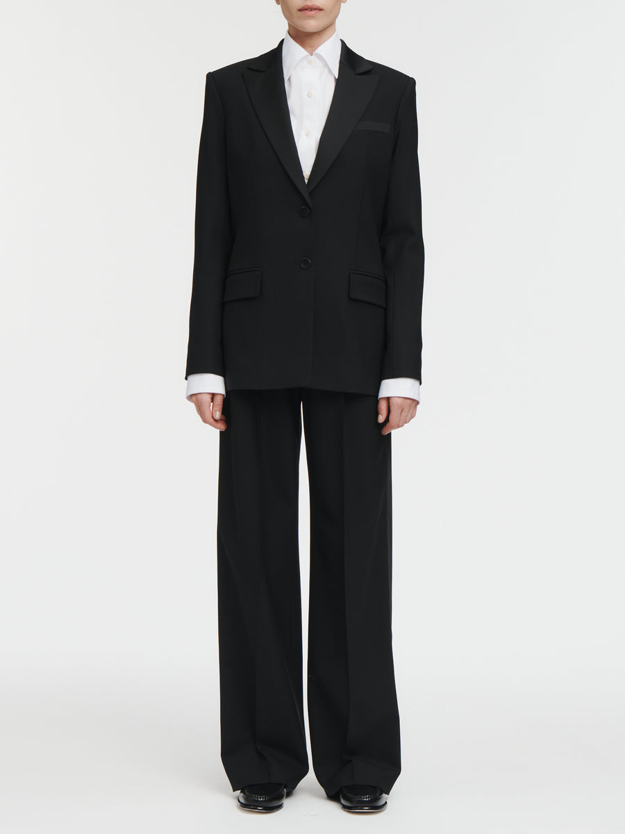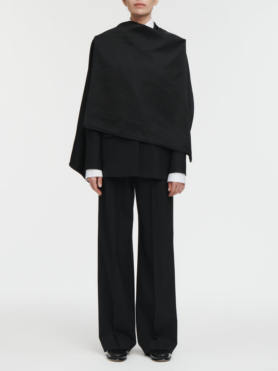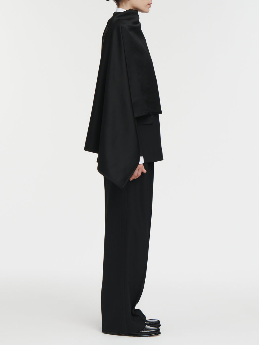 The Cloak Single Breasted Blazer in Black has a classic tailored fit with detachable cloak. Made in our Italian wool basket weave certified by the Responsible Wool Standard (RWS).