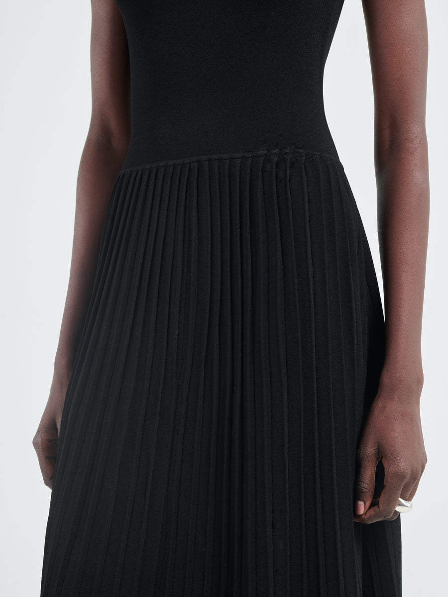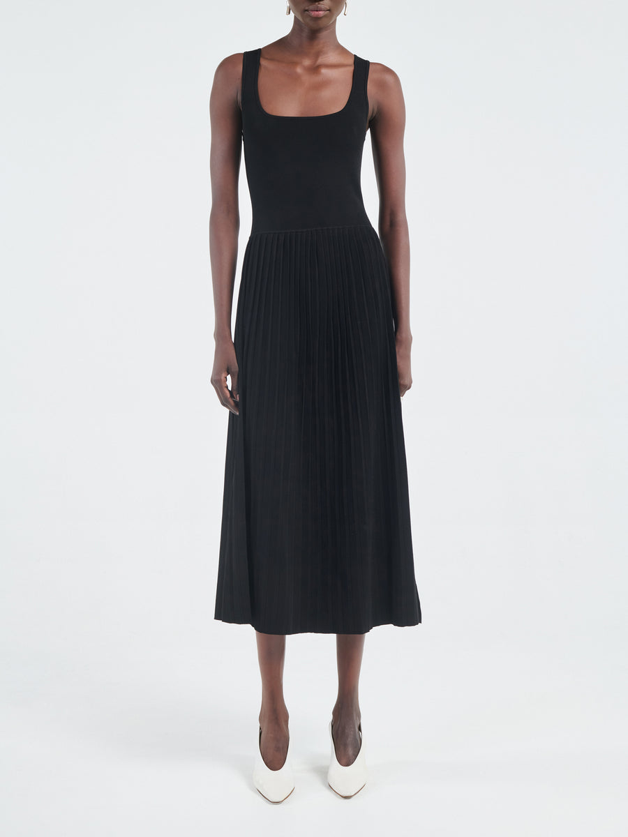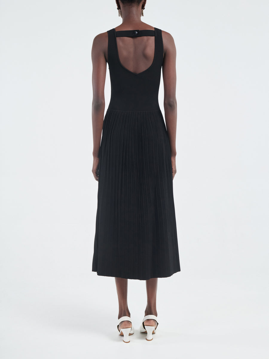 Crafted from our viscose blend, this halter dress combines a fitted bodice with a pleated skirt. This dress features a unique back button halter detail with a horizontally laid strap secured with a biodegradable button closure.