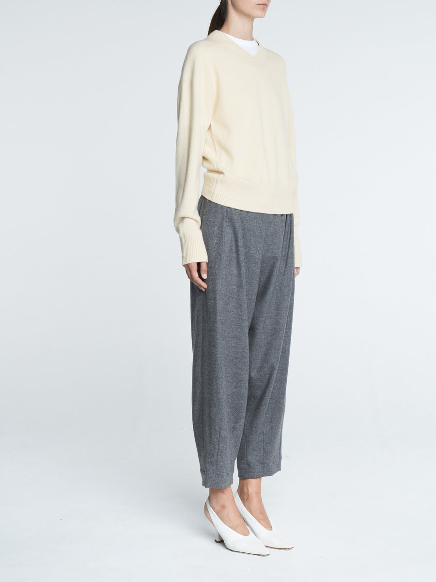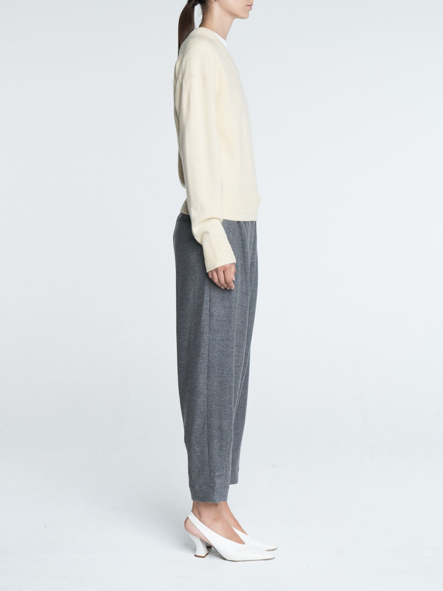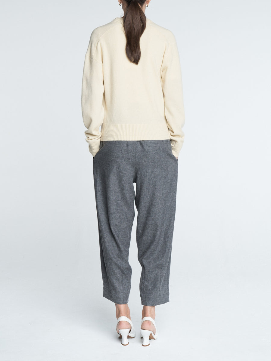 Barrel Leg Drawstring Trouser in Charcoal Tweed
