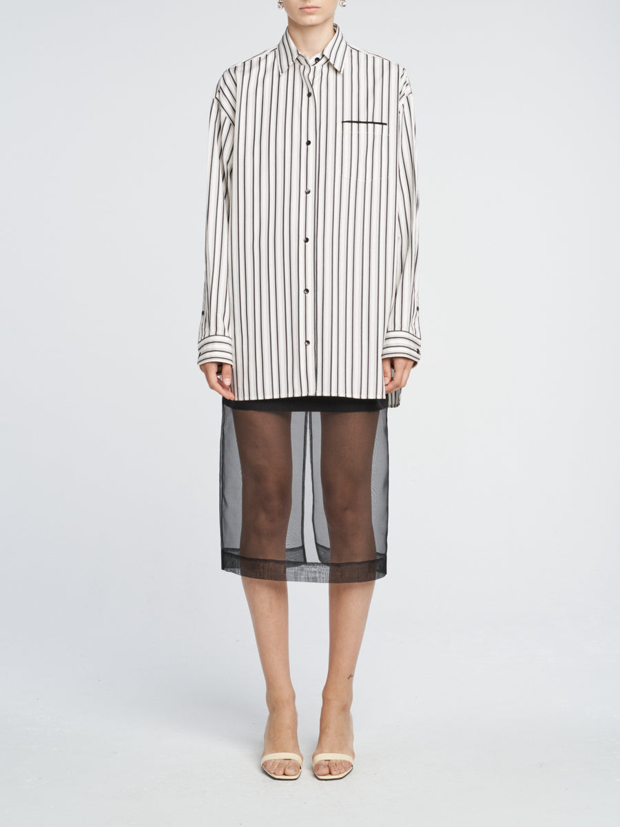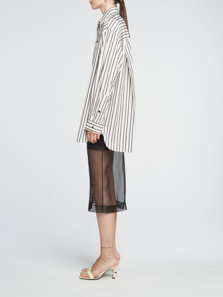 A locally-made low rise sheer skirt in black made, completed with a slip and back slit for ease of movement. Dressed up with your favorite evening top and even worn casual with a t-shirt or oversized top.