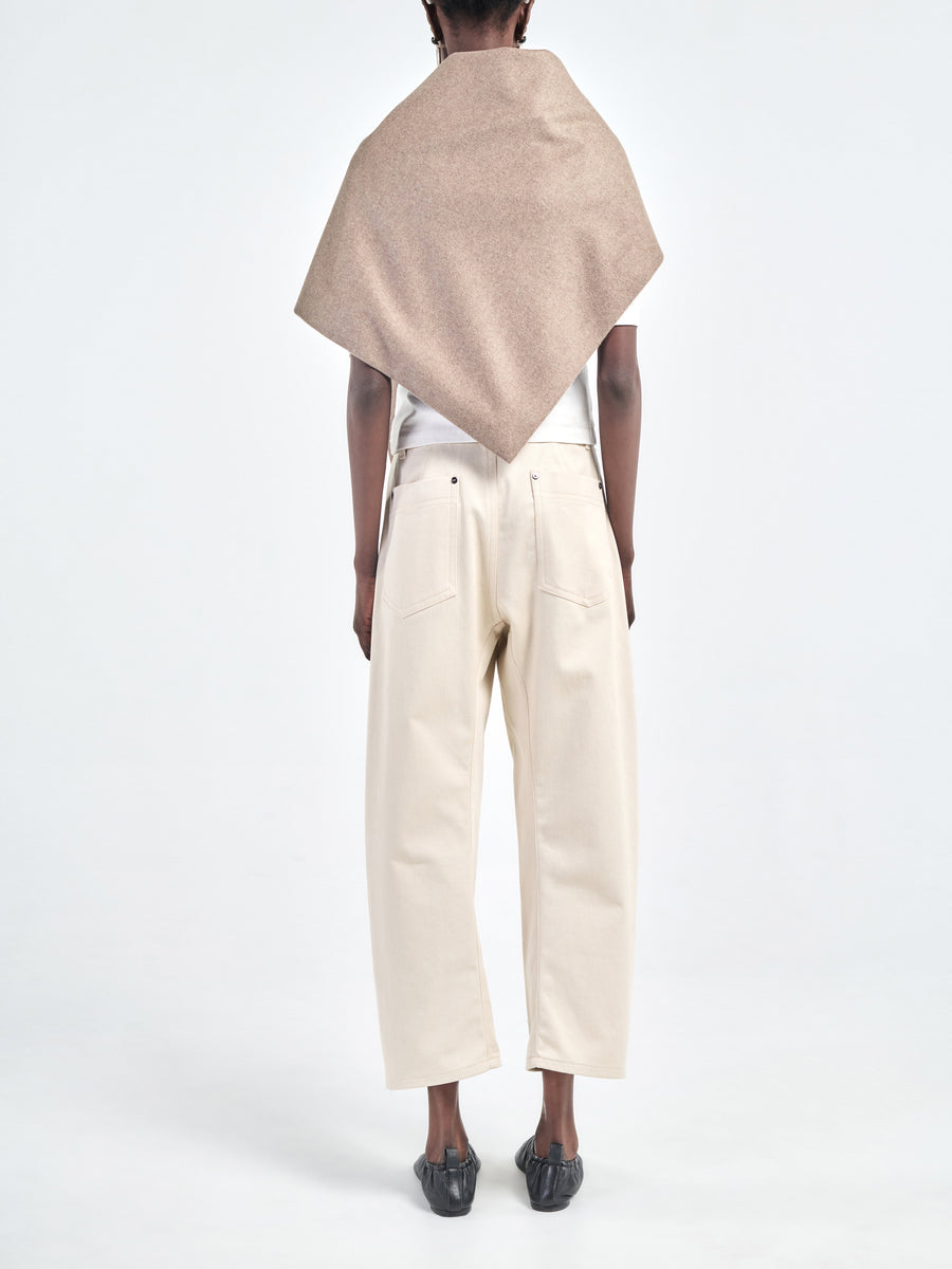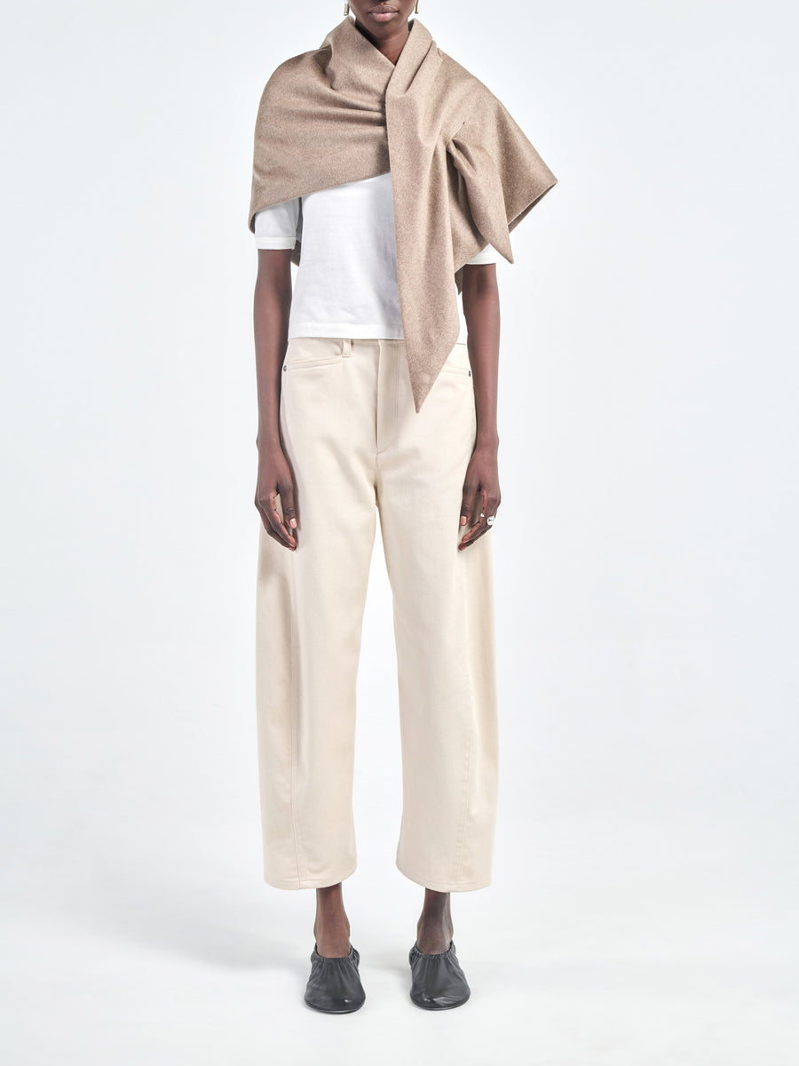 Our Capelette is made in a beautiful Italian wool-cashmere flannel with a soft, brushed finish. The stone colorway is warm and neutral and it features a clean front slit closure for easy styling and a gently curved silhouette around the shoulders.