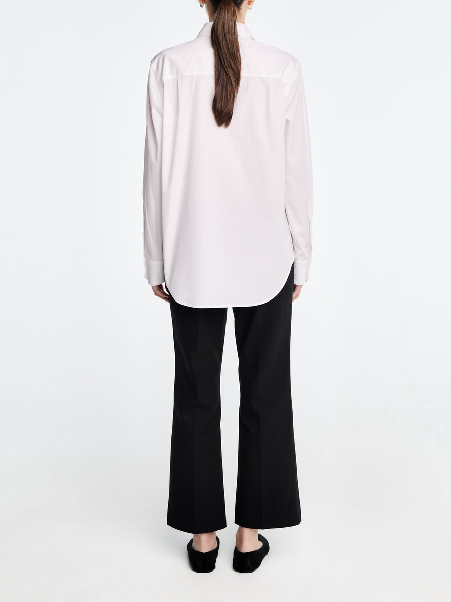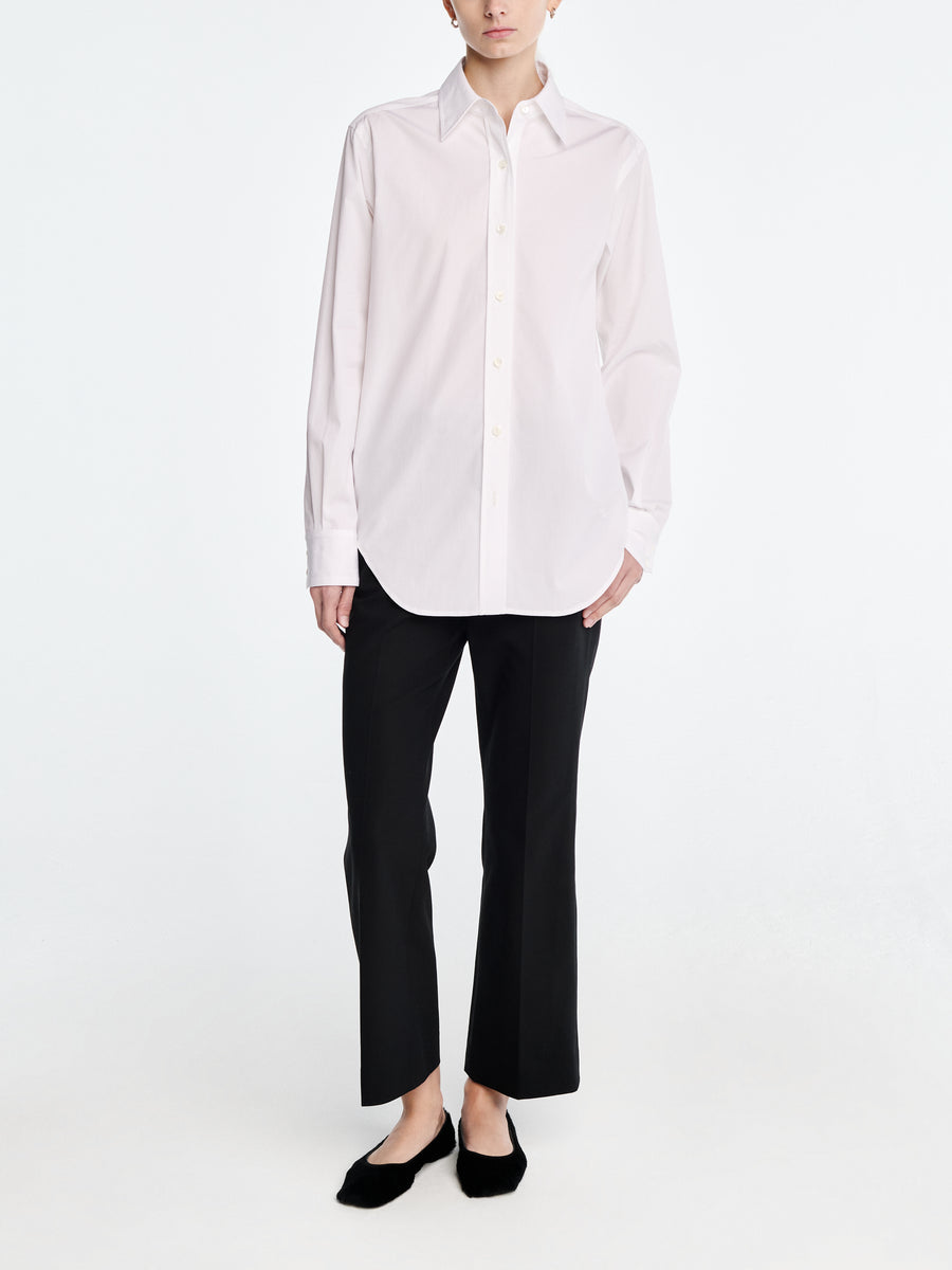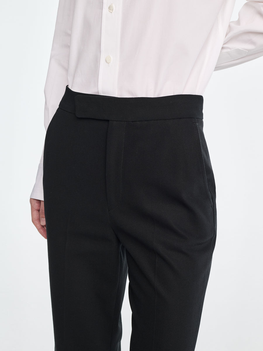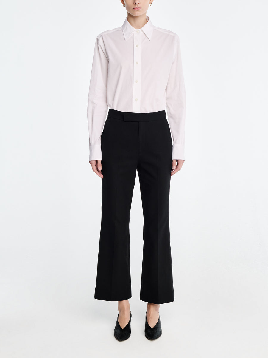 Our Signature High Waisted Crop Trouser is made in super stretch Italian wool certified by the Responsible Wool Standard (RWS) for an incredibly comfortable, flattering fit. Featuring a high waist, slash pockets and a slight flare at the bottom of the leg.