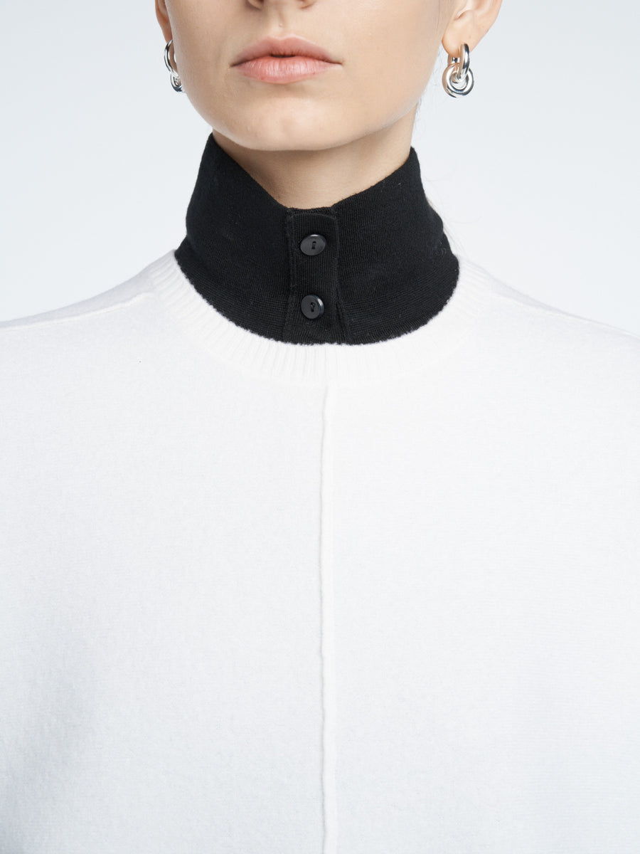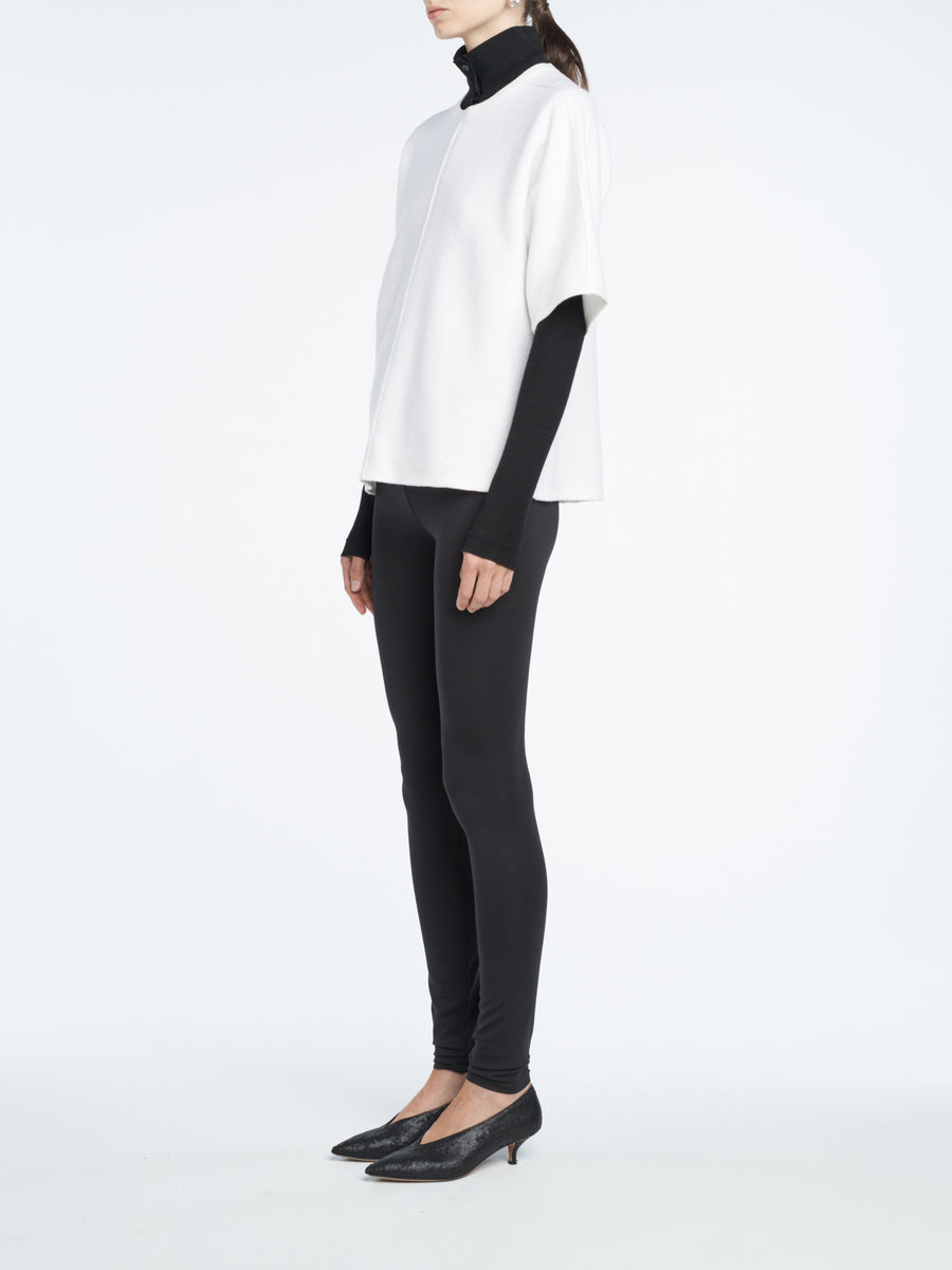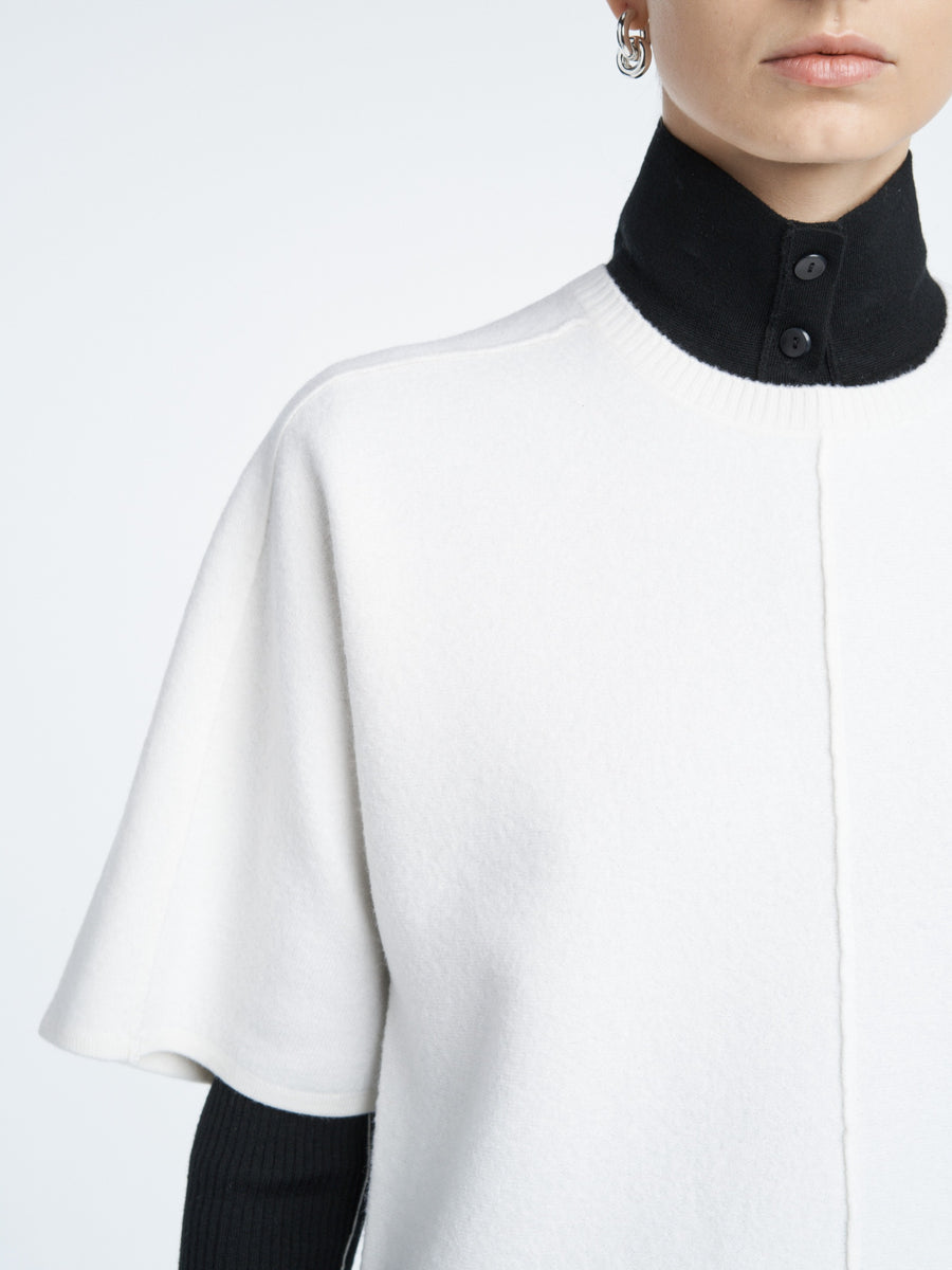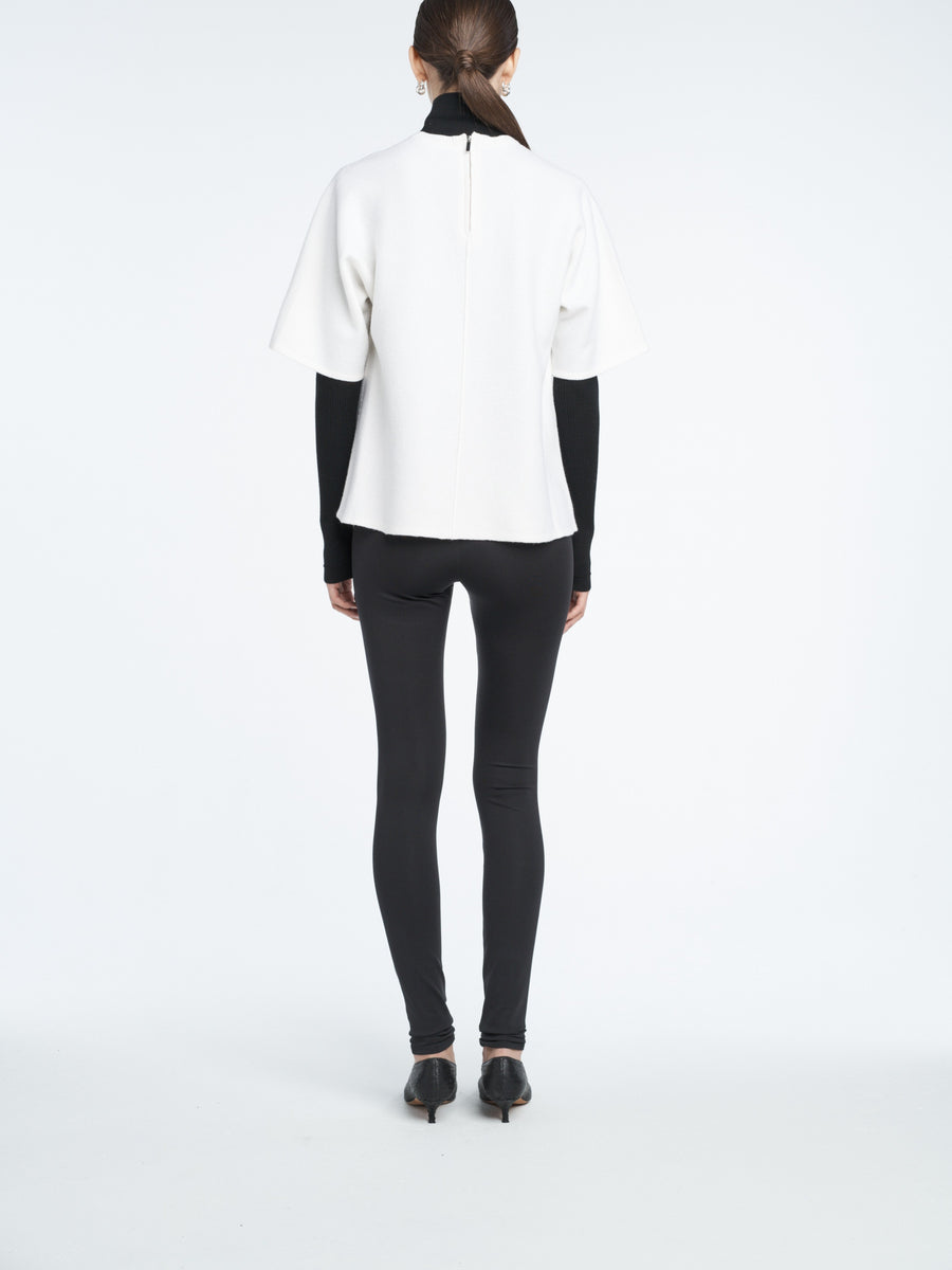 A knit oversized t-shirt made from a soft to the touch ivory Responsible felted Merino wool completed with subtle stitching down the front and along the sleeves. With a slightly structured silhouette and a hidden half zip at the back, this knit t-shirt is nicely layered over a turtleneck or long sleeve.