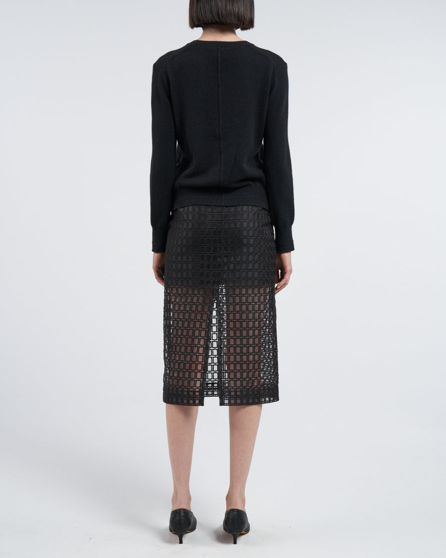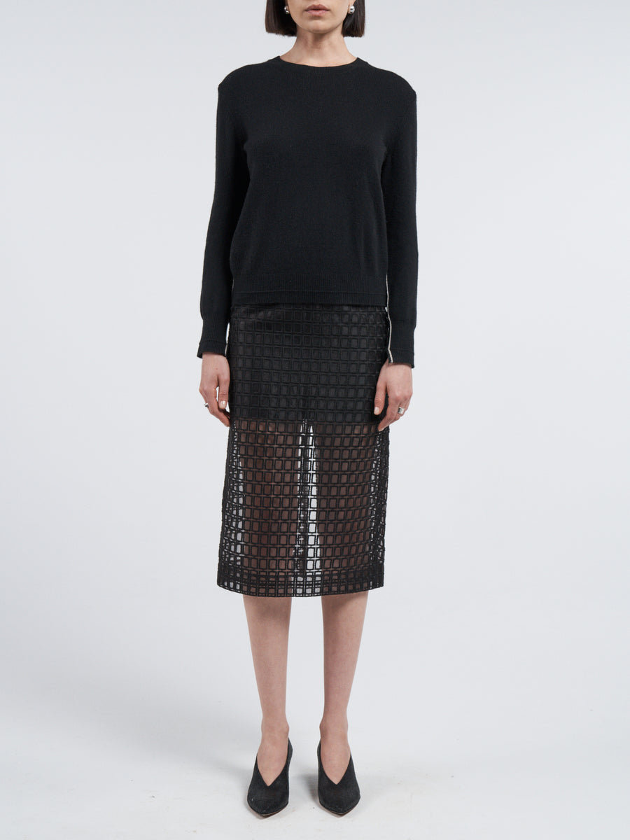 The Featherweight Crew in Black redefines the classic wardrobe staple with a slim, elongated fit and features a signature crema link line detail at the side seams. Crafted from a Recycled Cashmere & Organic Cotton Blend.