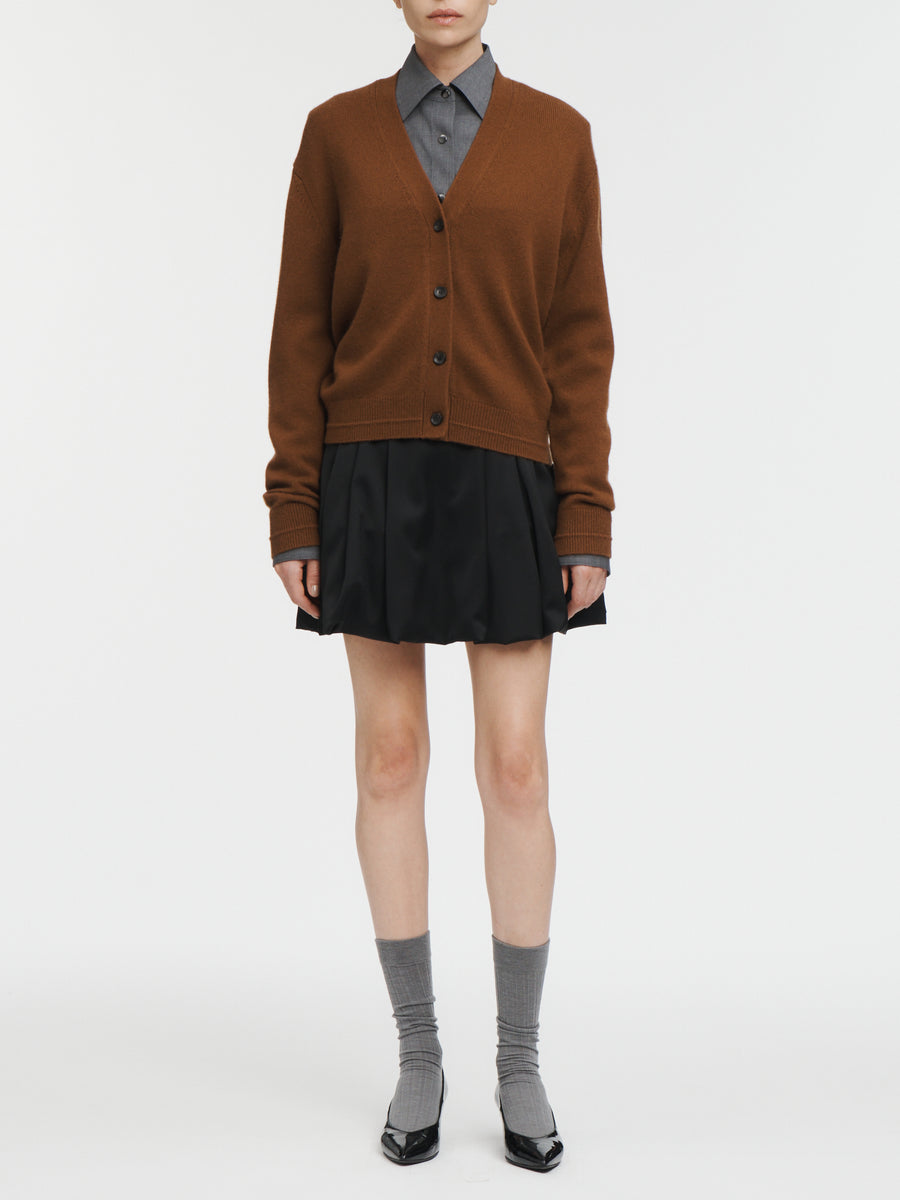 The Classic V-Cardigan in Vicuna is an update to our Featherweight Cardigan with slightly heavier weight. This classic fit style is made in our signature Italian 50% recycled cashmere & 50% organic cotton blend. Also available in heather grey and red lacquer.