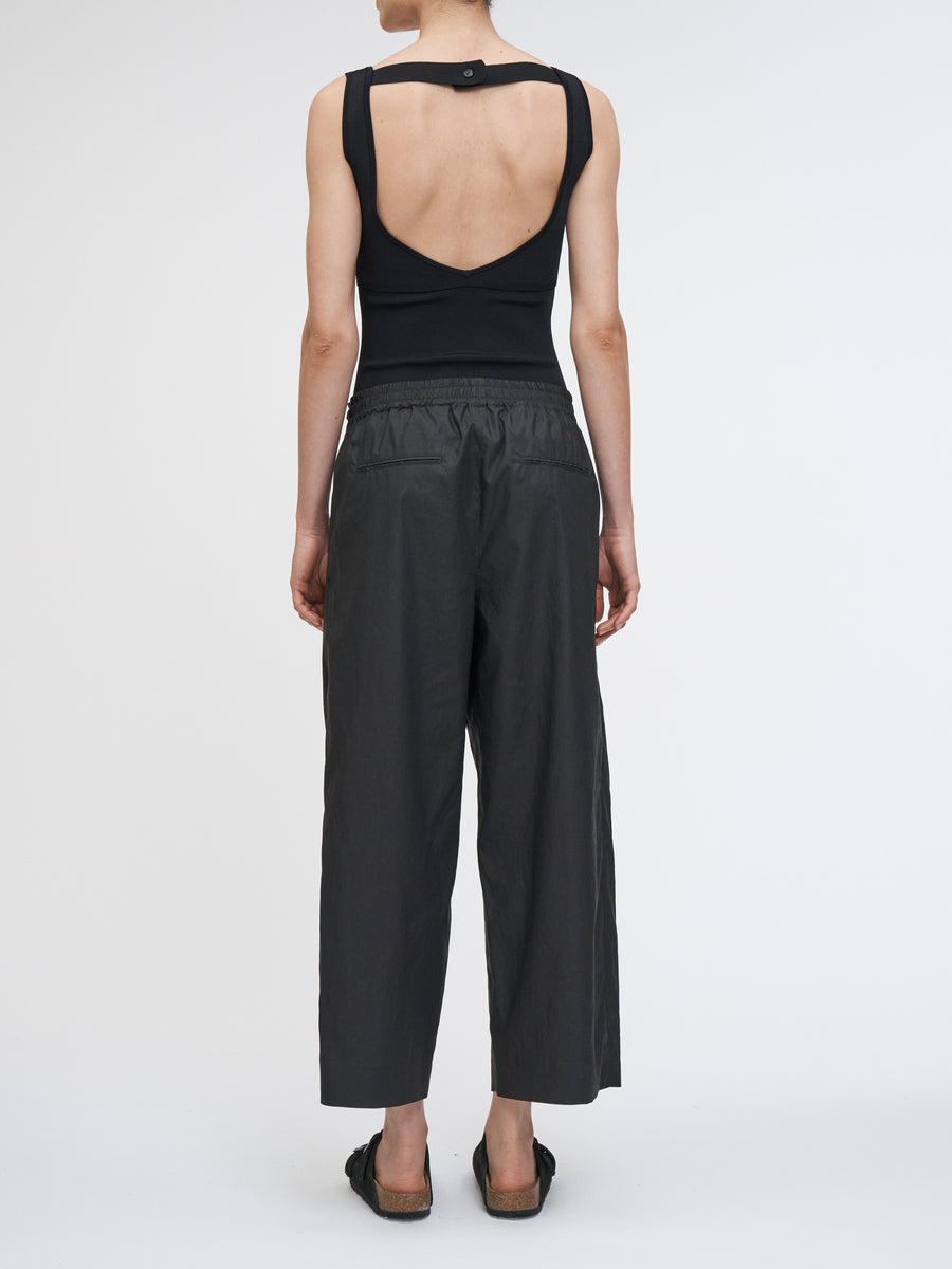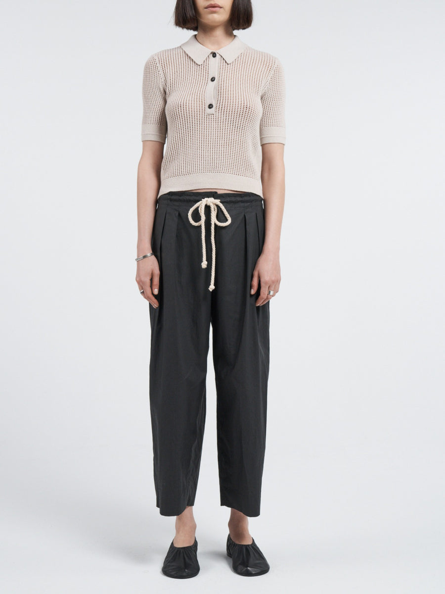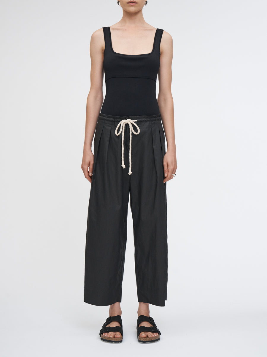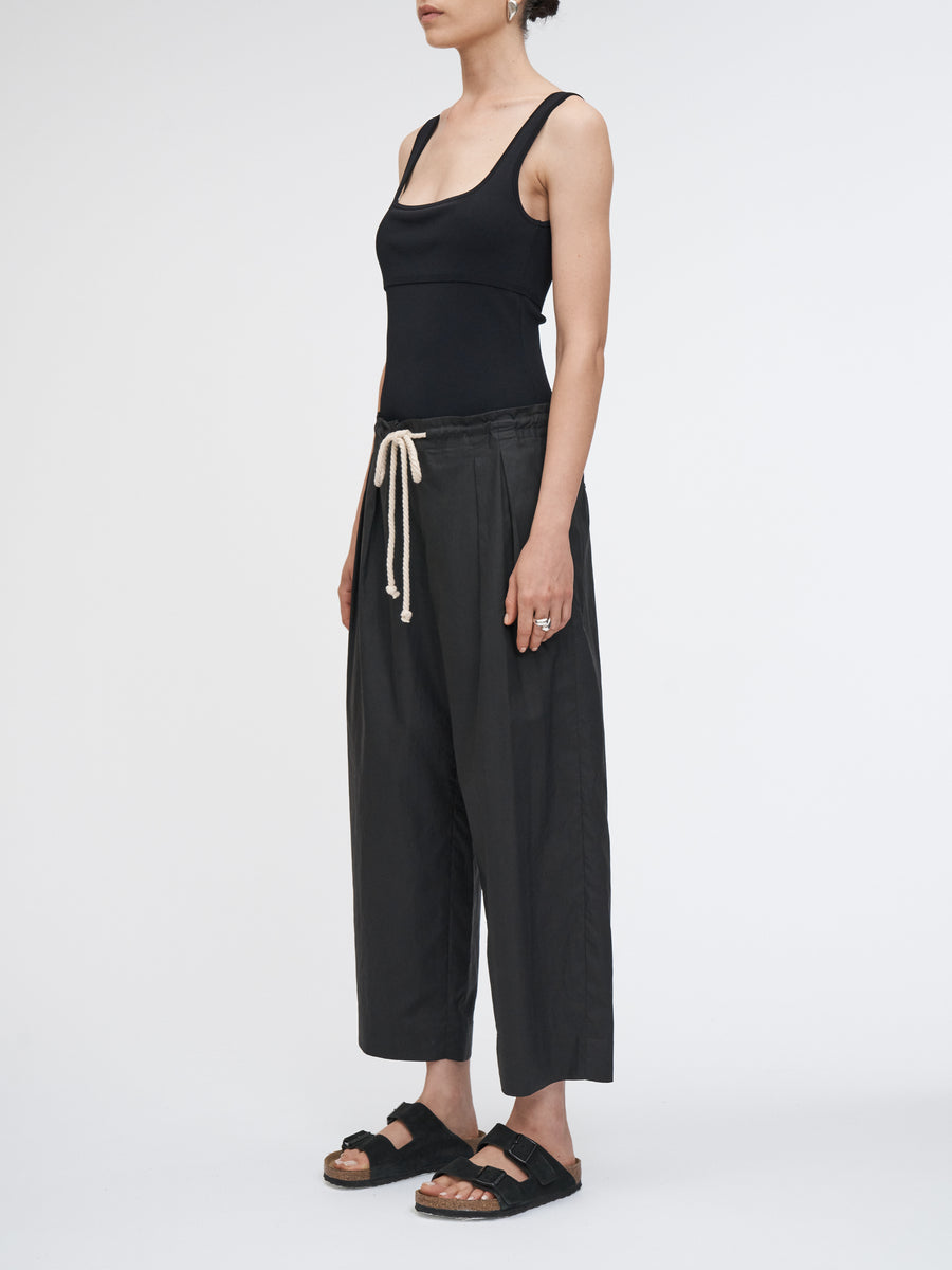 Our signature drawstring silhouette in 100% organic cotton sateen with relaxed straight leg, front pleats and elasticated drawstring waistband for comfort and ease.