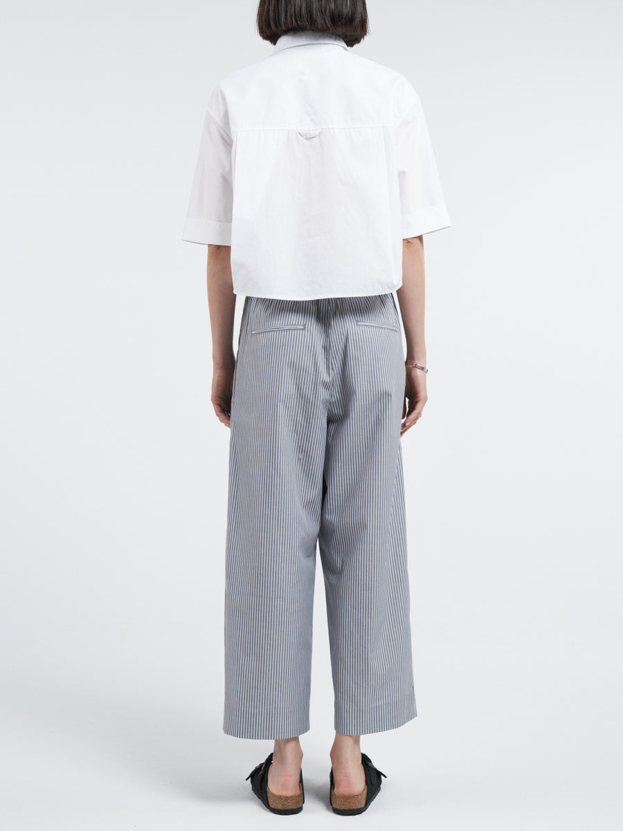 Drawstring Pleat Front Pant in Grey Railroad Stripe