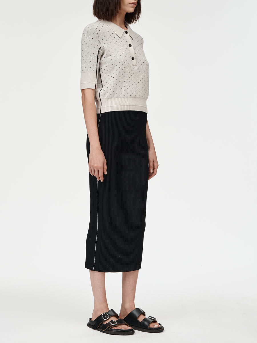 Jacquard Polo in Crema With Black Dot