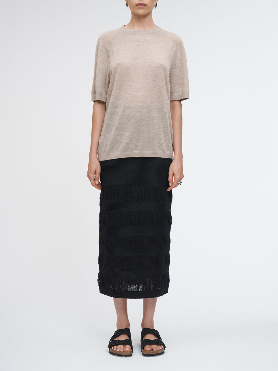 Knit in a heathered stone hue, this oversized T-shirt is crafted from our tissue-weight Italian cashmere. Butter-soft and exceptionally lightweight, it features raglan sleeves for a relaxed silhouette.