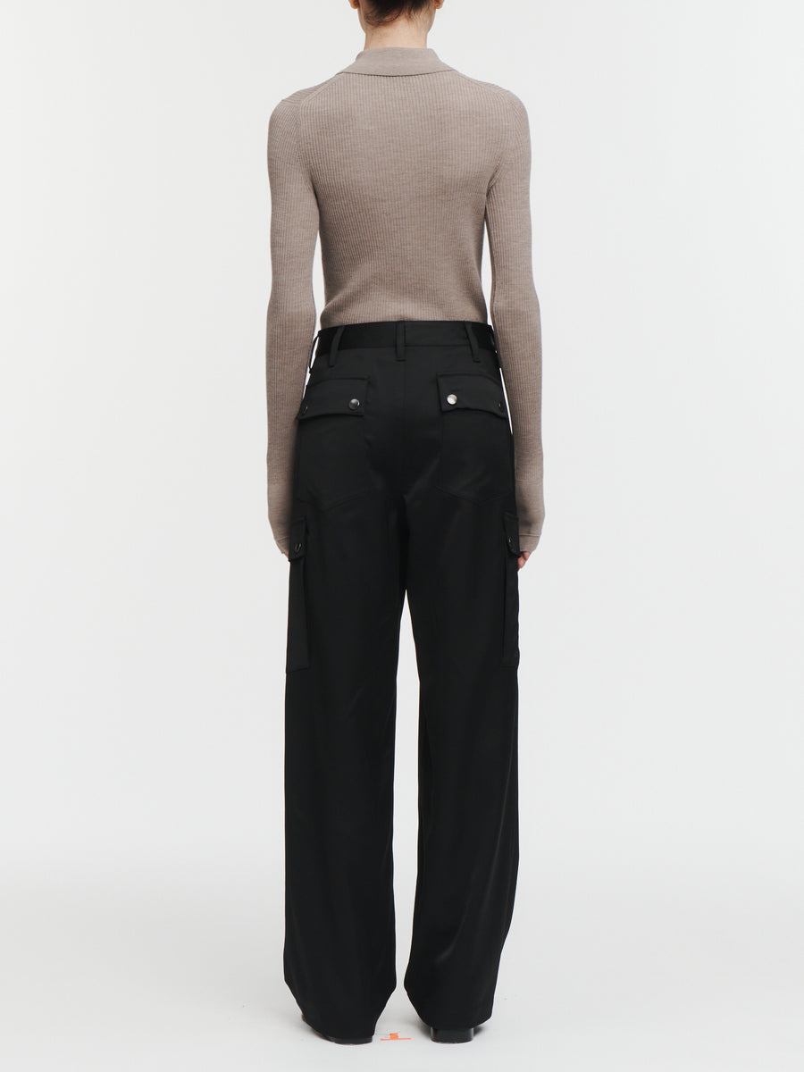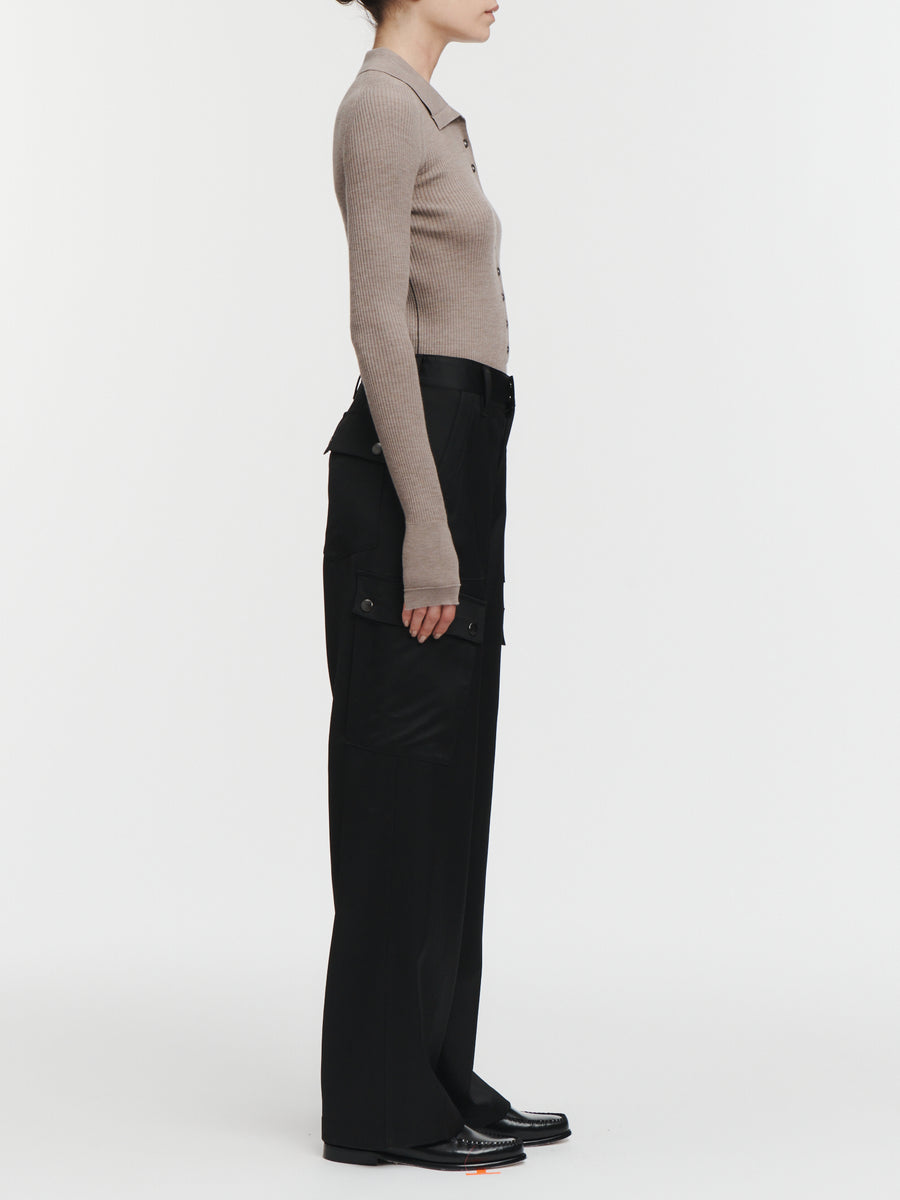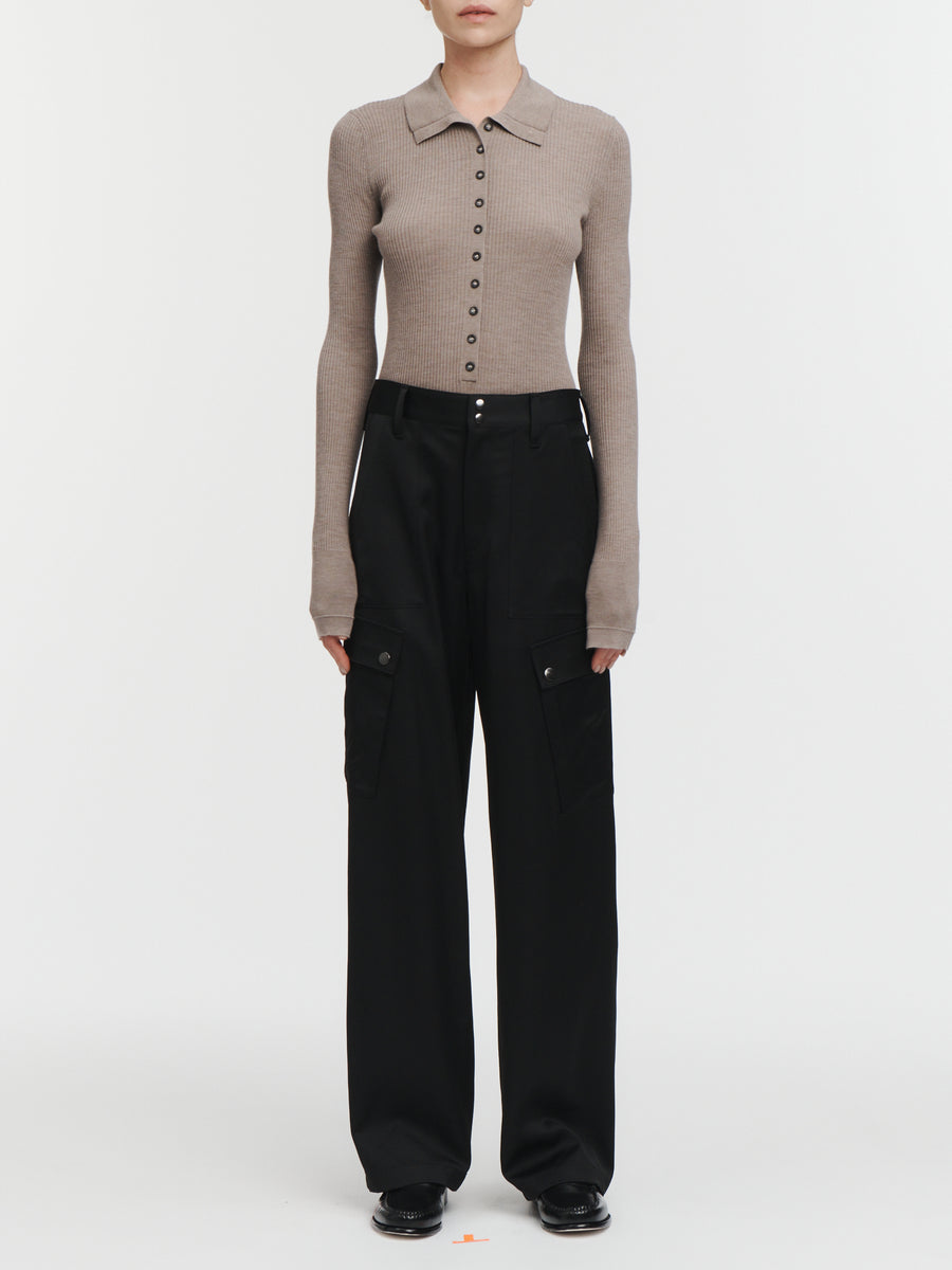 The Snap Wide Leg Cargo Pant in Black is a tailored, relaxed fit style featuring utilitarian details like snap closures and back flap pockets .Made in our Italian FSC viscose twill blend.