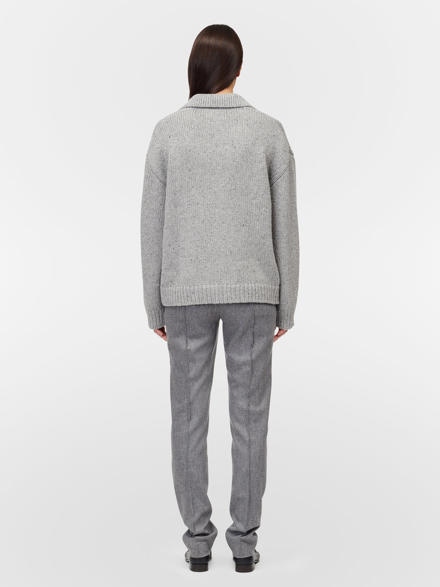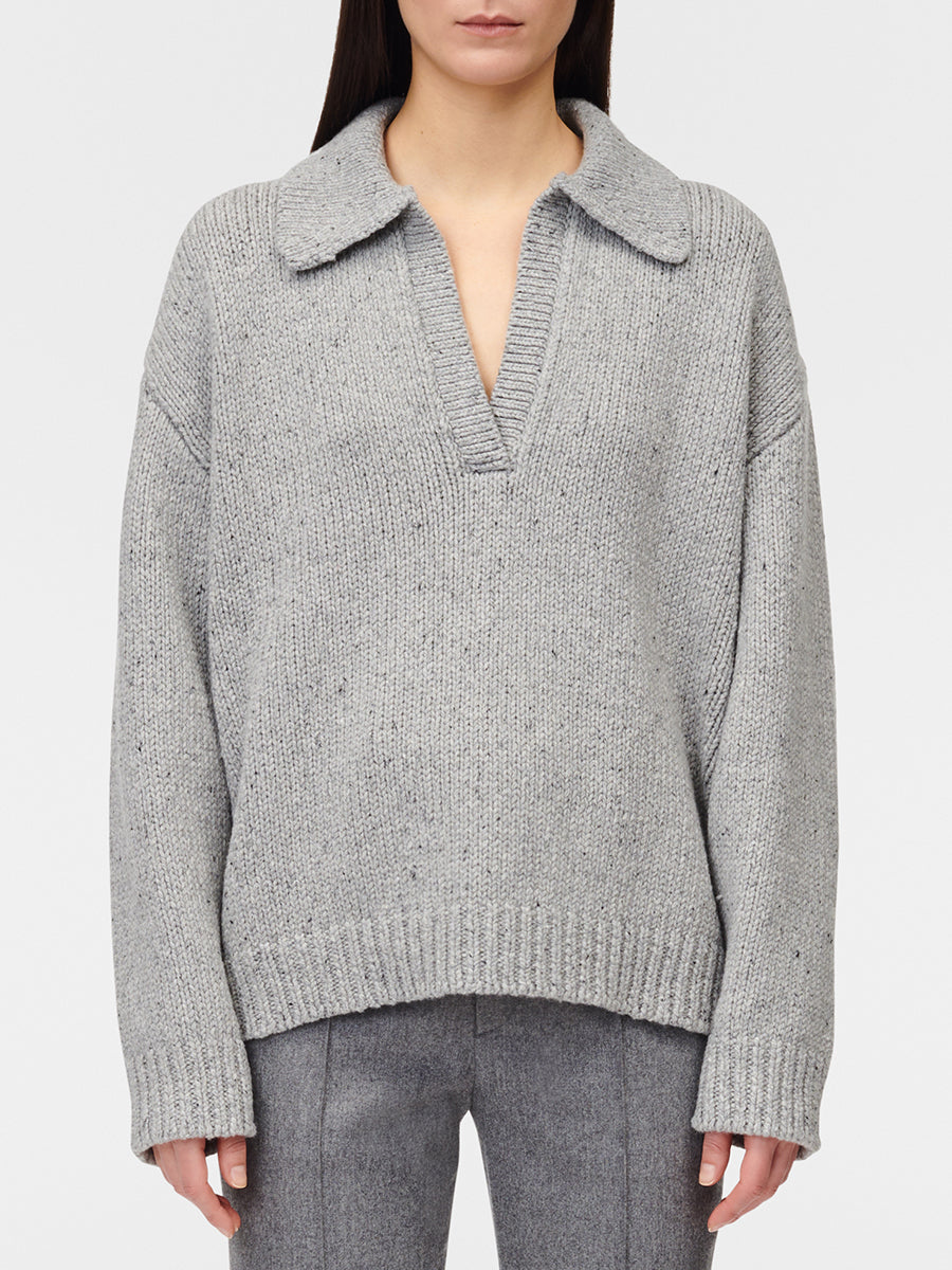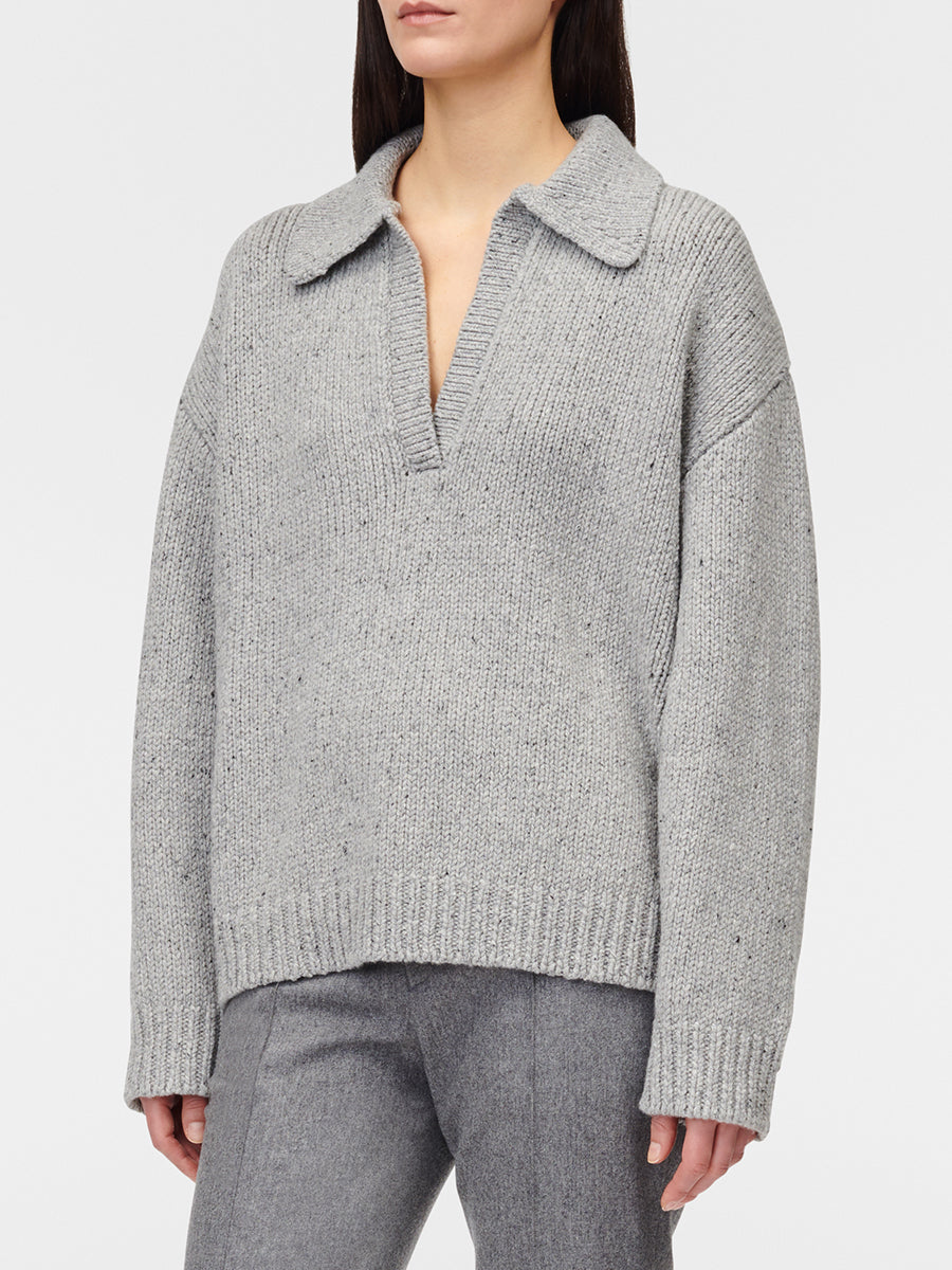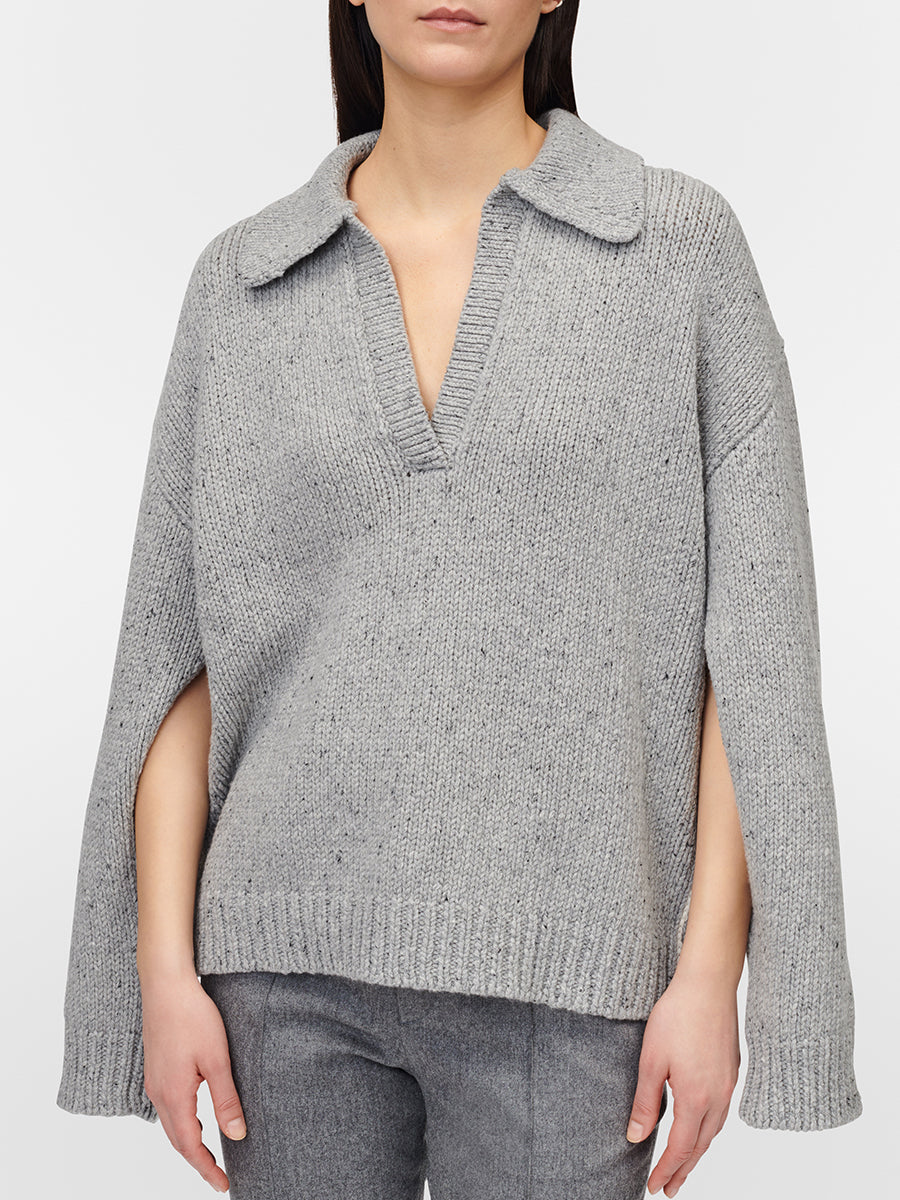 Split Sleeve Collar Sweater in Grey Donegal Tweed