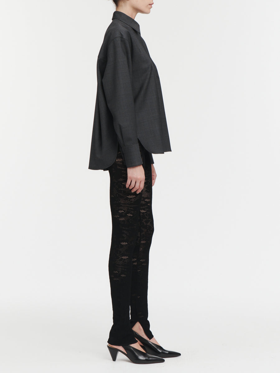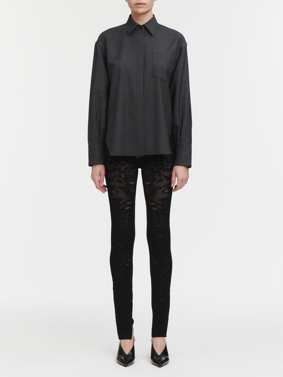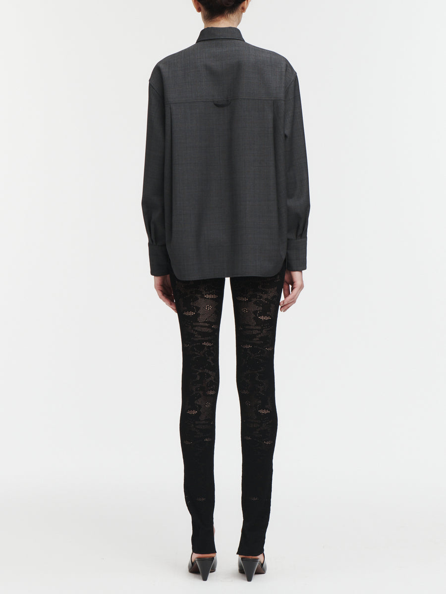 The Oversized Covered Placket Shirt in Glen Plaid is one of signature and best selling silhouettes. The style features a front chest pocket and box pleat detail on the back, giving the signature cocoon–like effect.