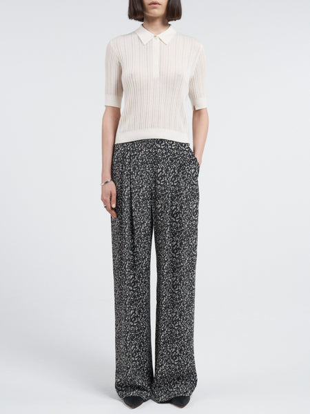 Pointelle Shrunken V Polo in Ivory