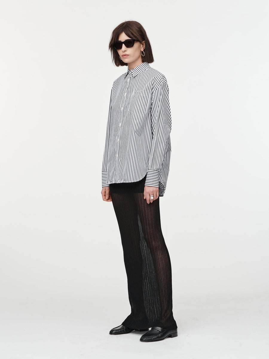 The Oversized Shirt is one of our seasonless, best selling styles. The fit is long through the body with front chest pocket and box pleat detail on the back, providing the signature cocoon–like effect.