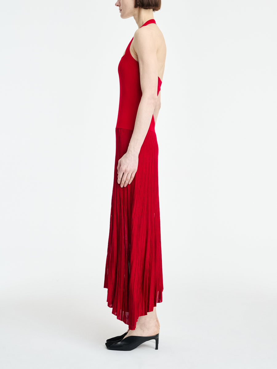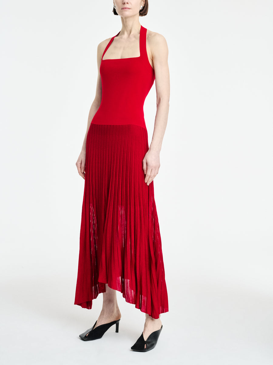 Halter Pleat Dress in Carmine Red