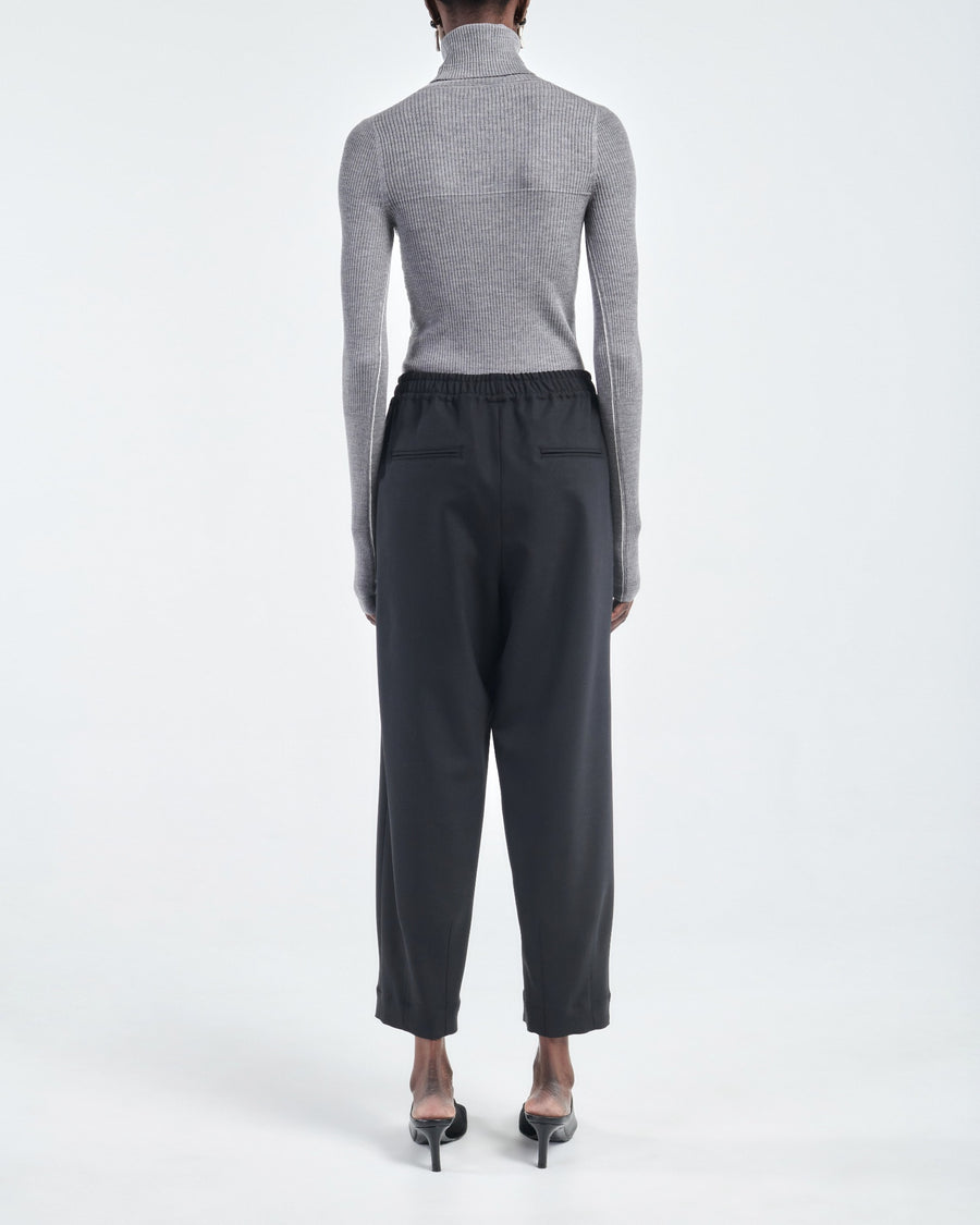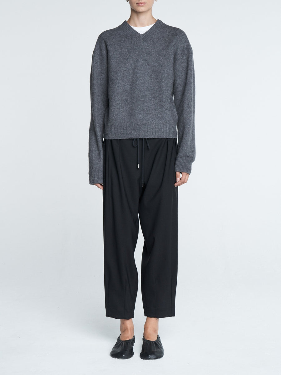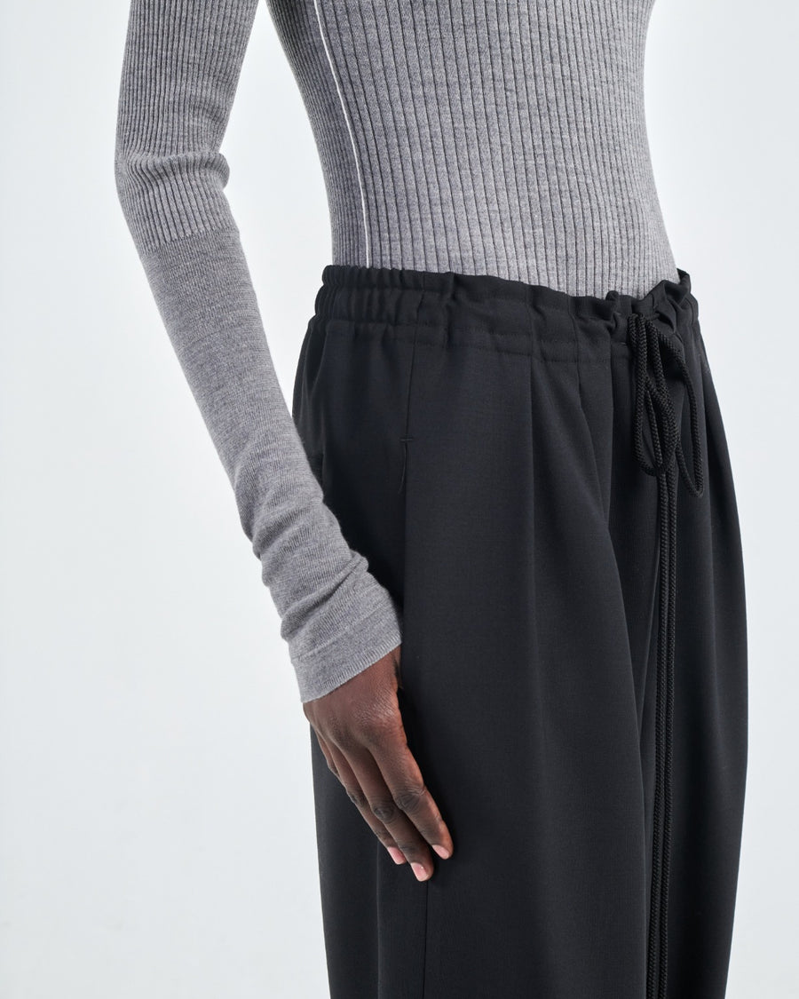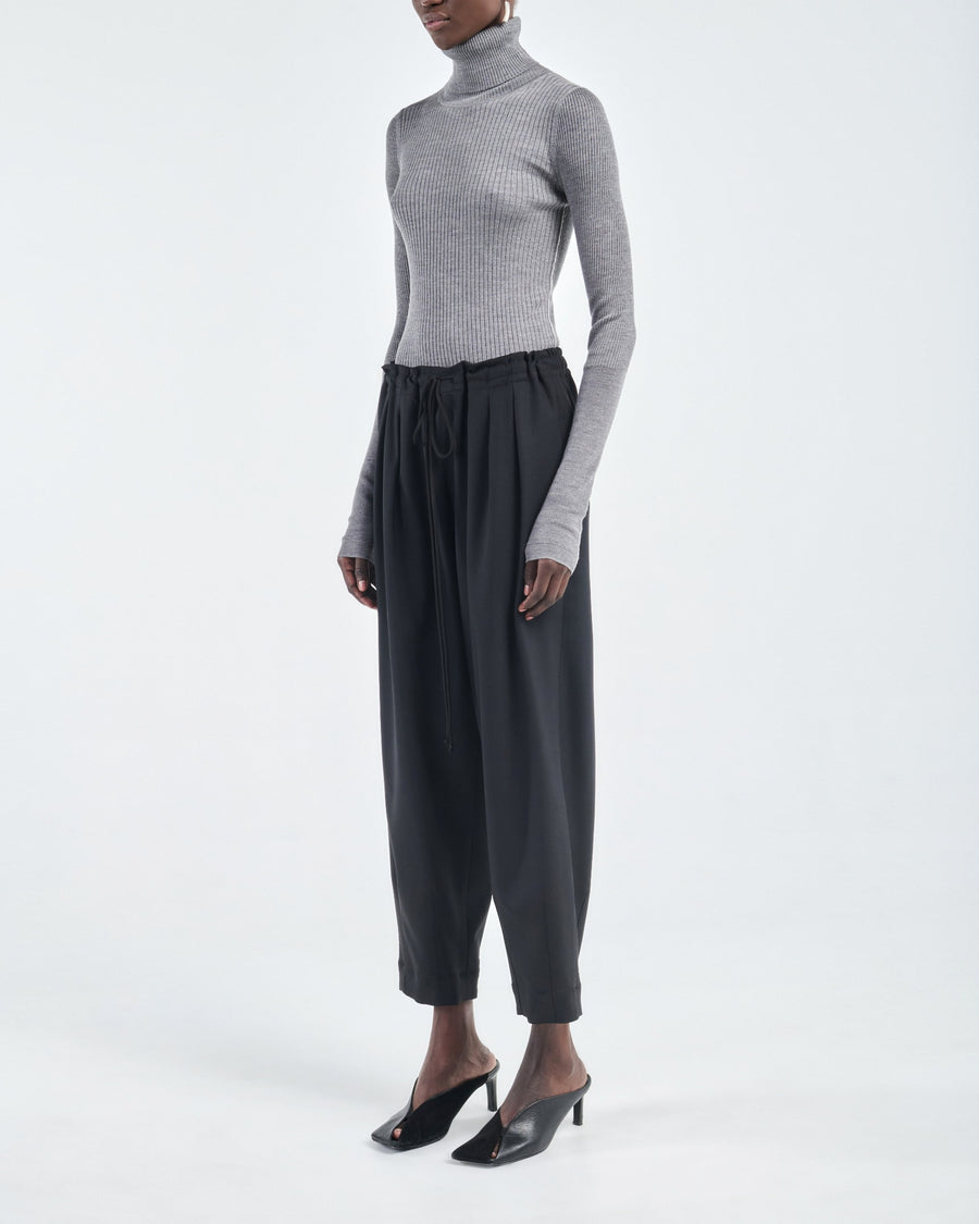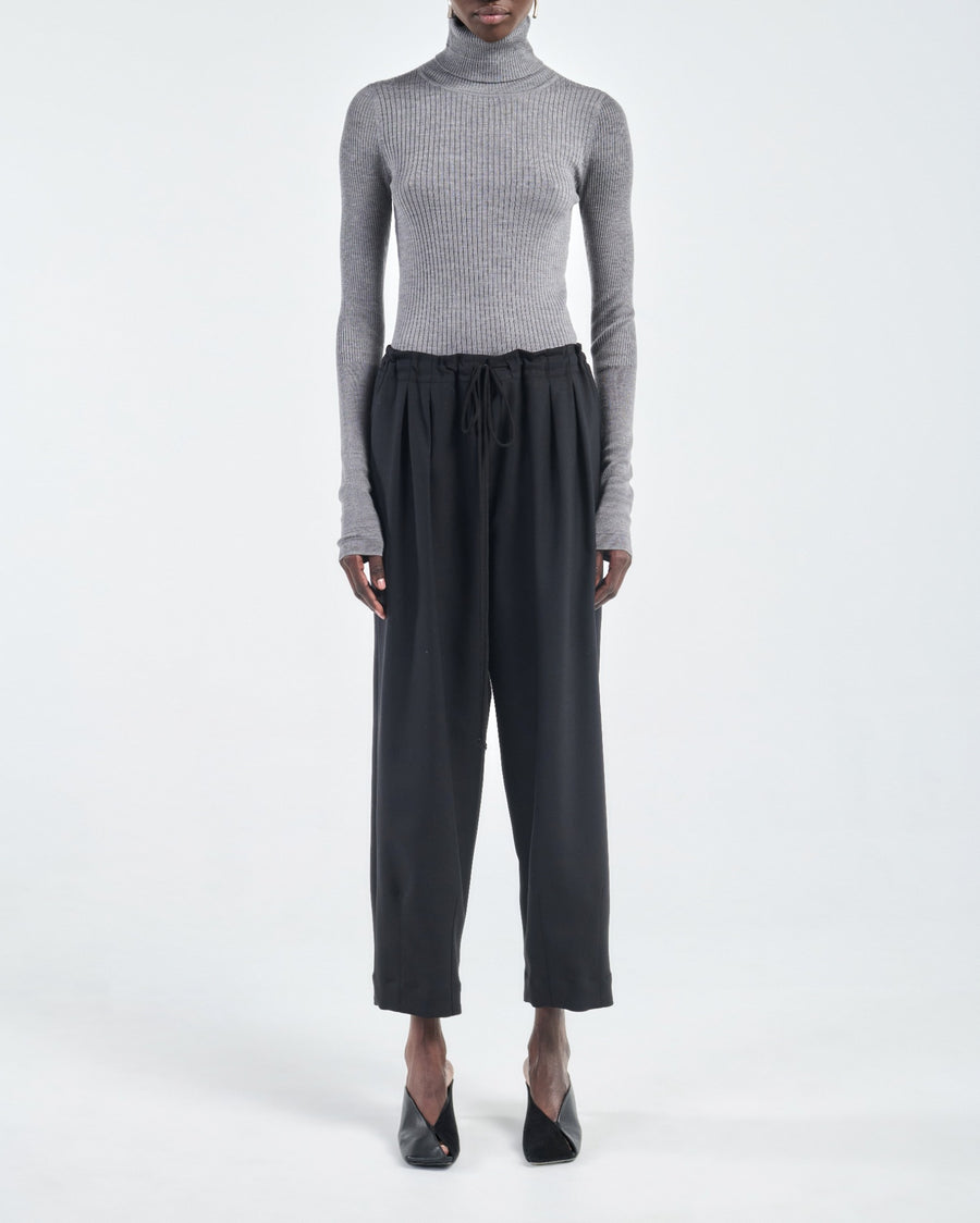 The Barrel Leg Drawstring Pant in Black is an updated take on our signature drawstring style. The pleat front barrel leg pant will narrow at the ankle and tie at the waist with a pleat front detail and side slit pockets. Made of an organic high twist Japanese cotton. Note, this style runs large, we recommend sizing down.