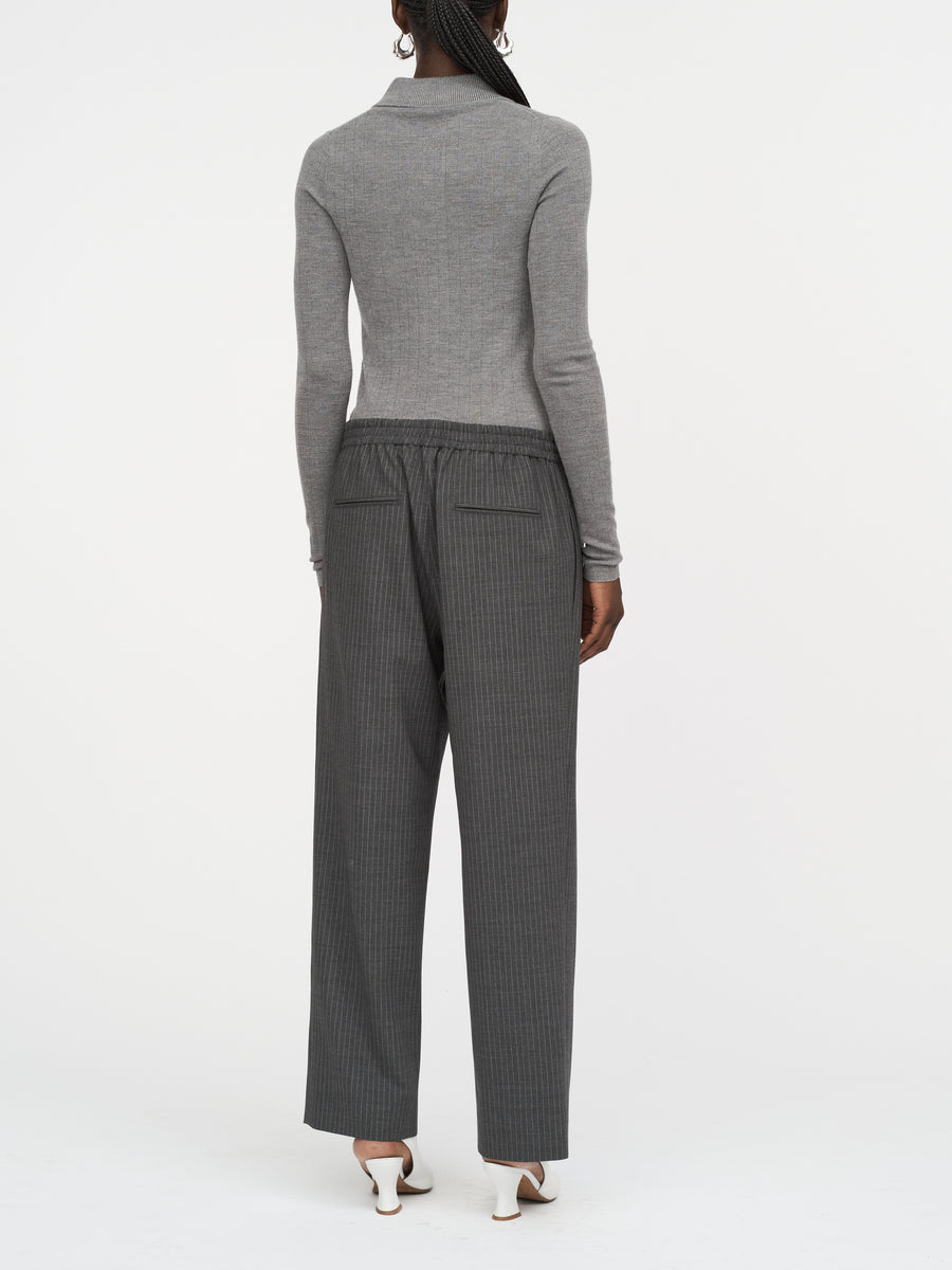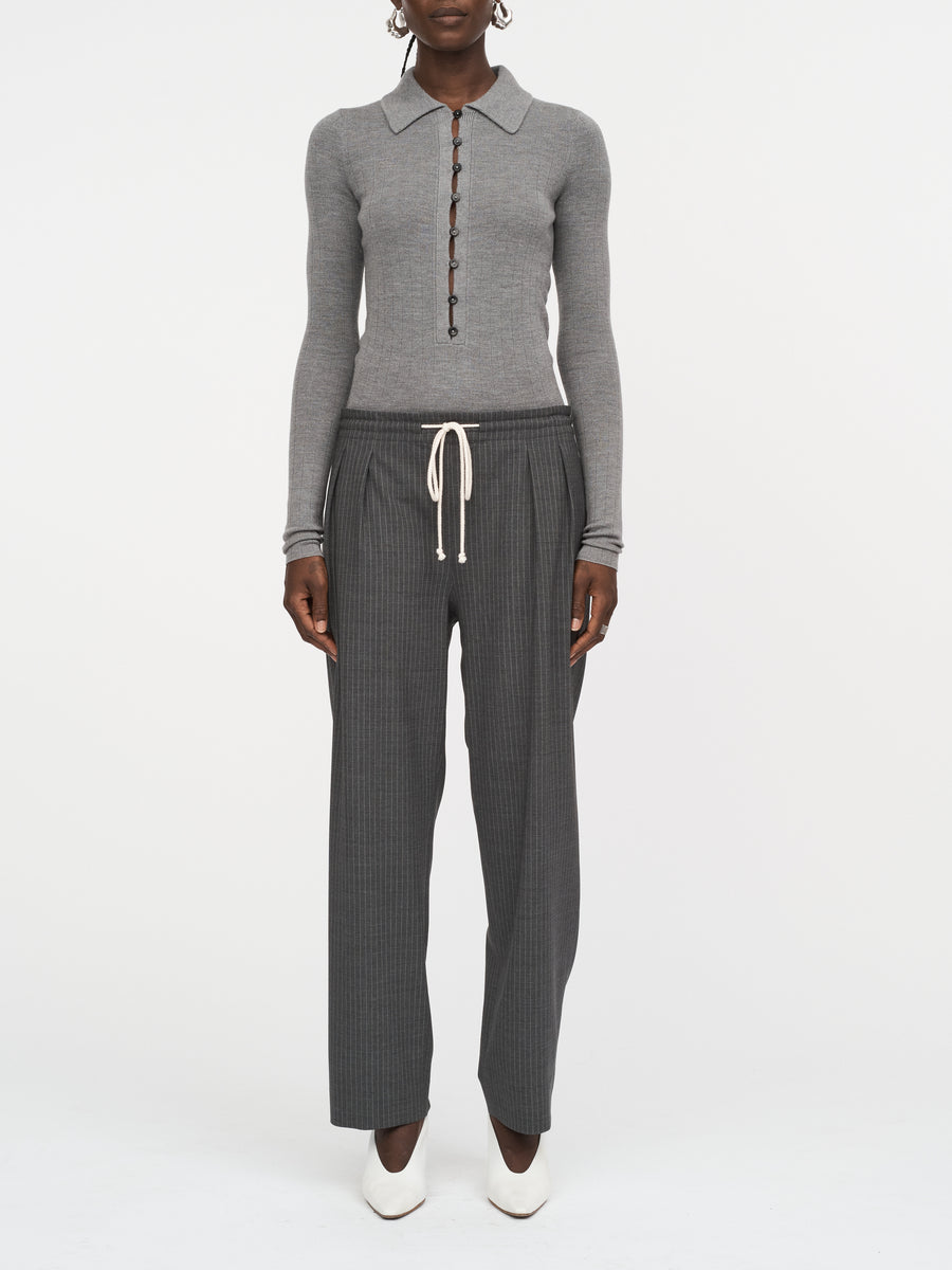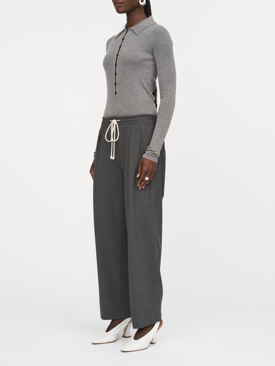 Cosy Drawstring Pant in Charcoal Pinstripe