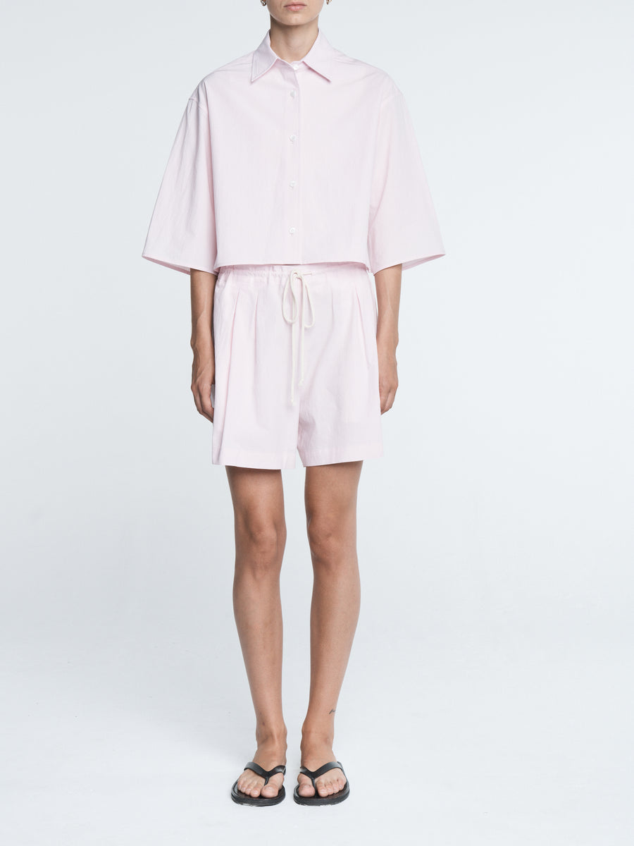 Cropped Short Sleeve Shirt in Blush Pink