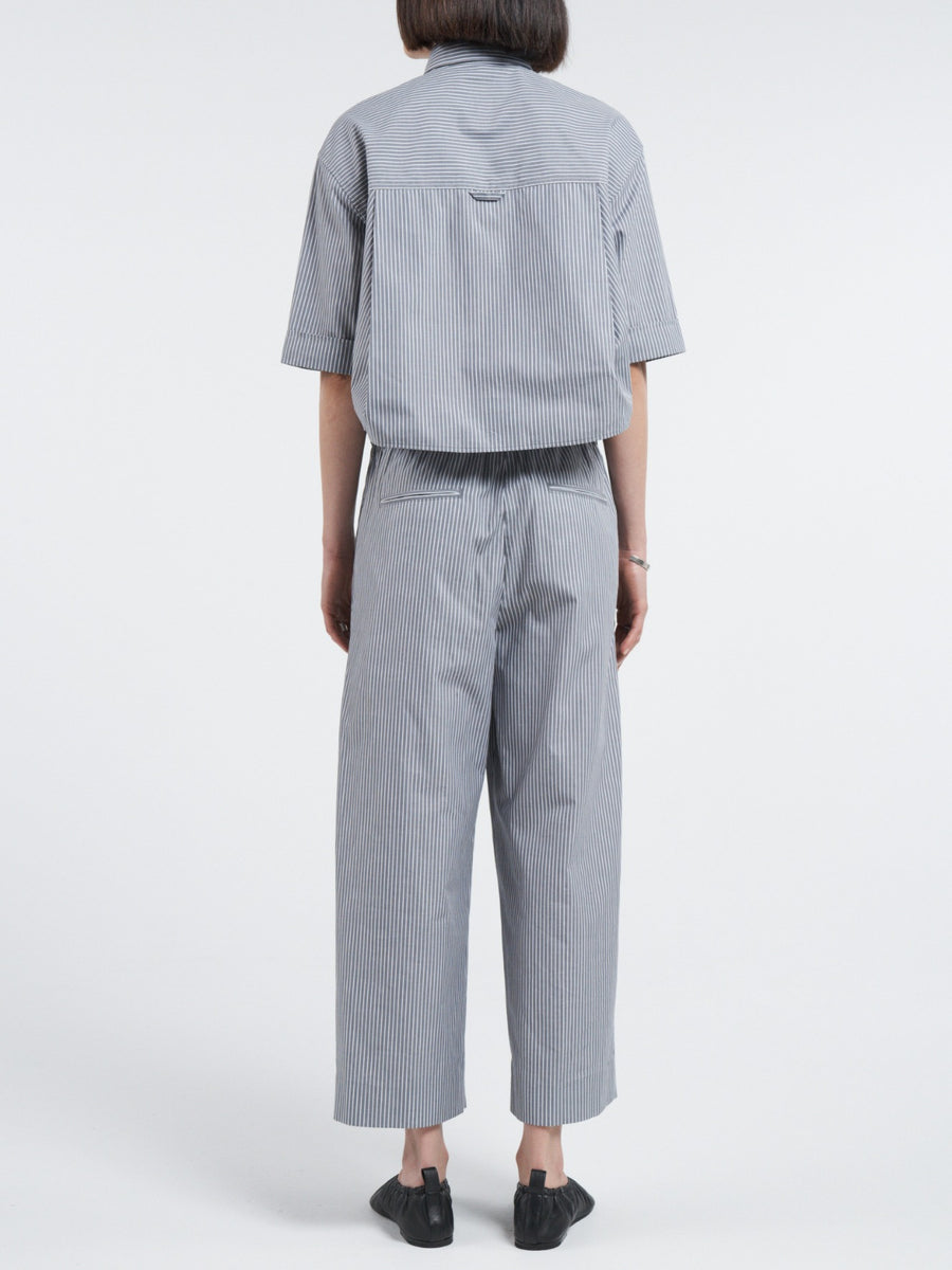 Drawstring Pleat Front Pant in Grey Railroad Stripe