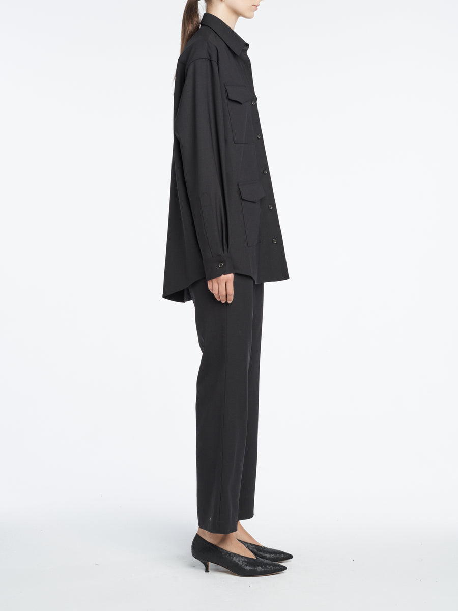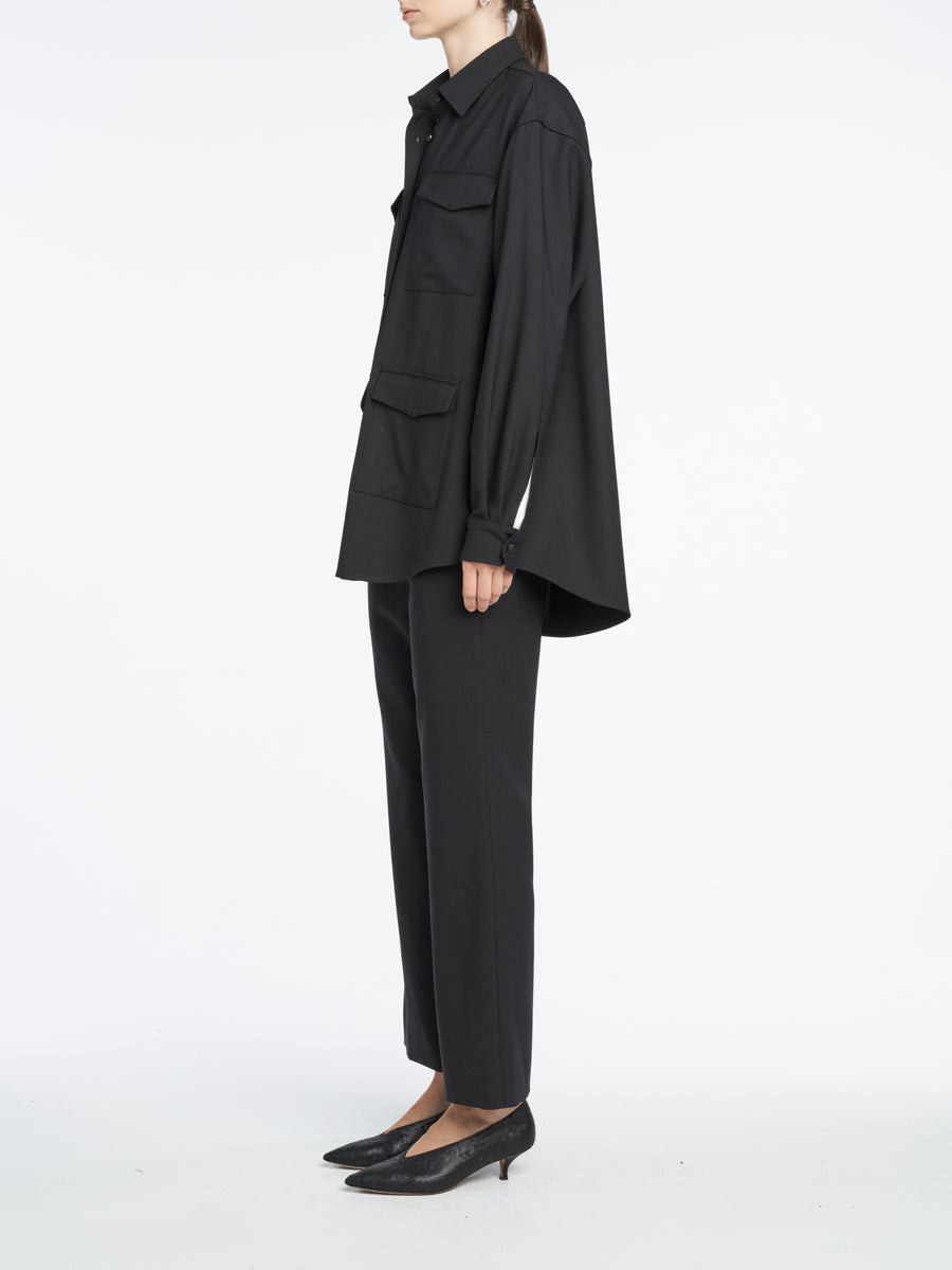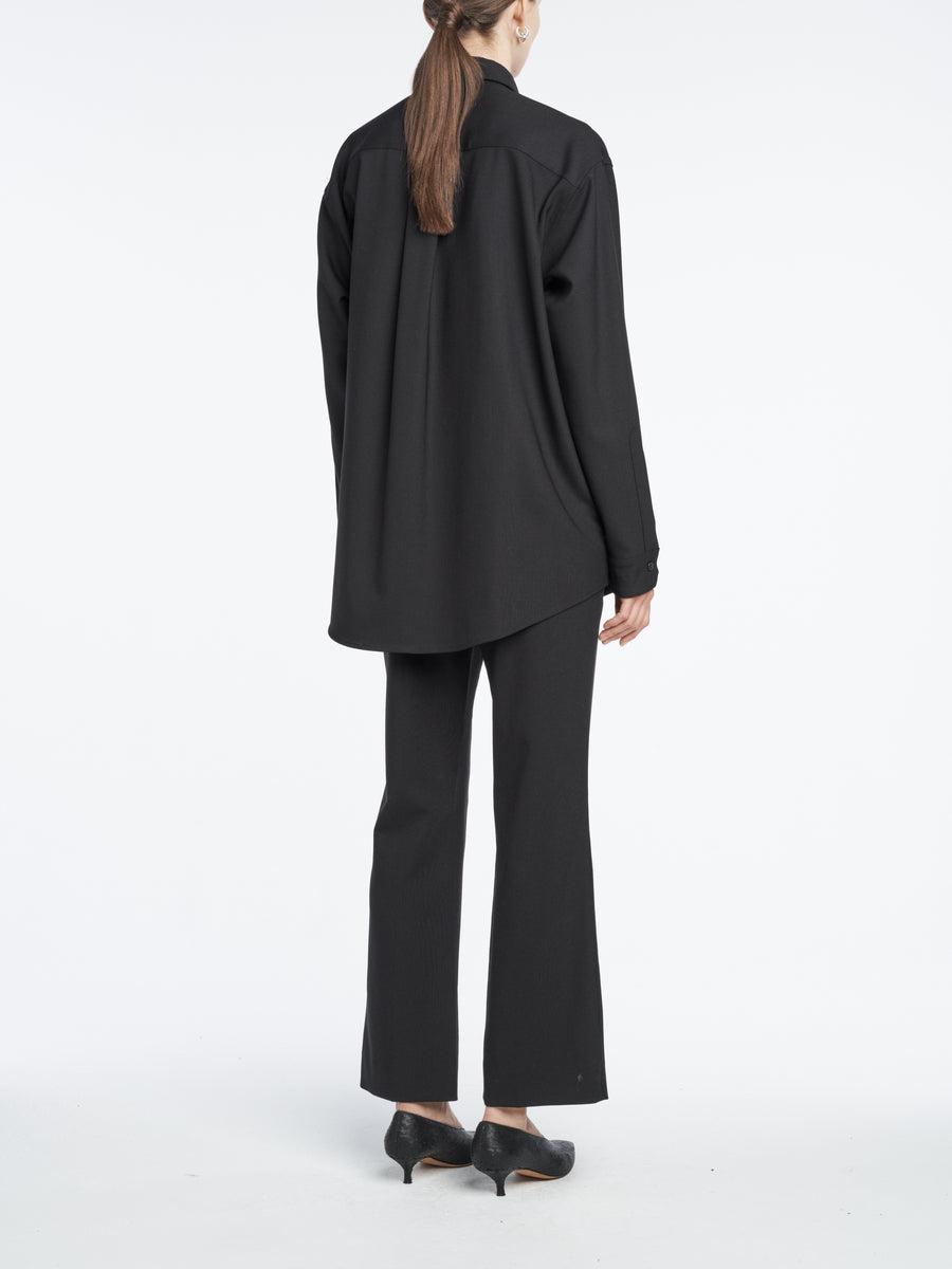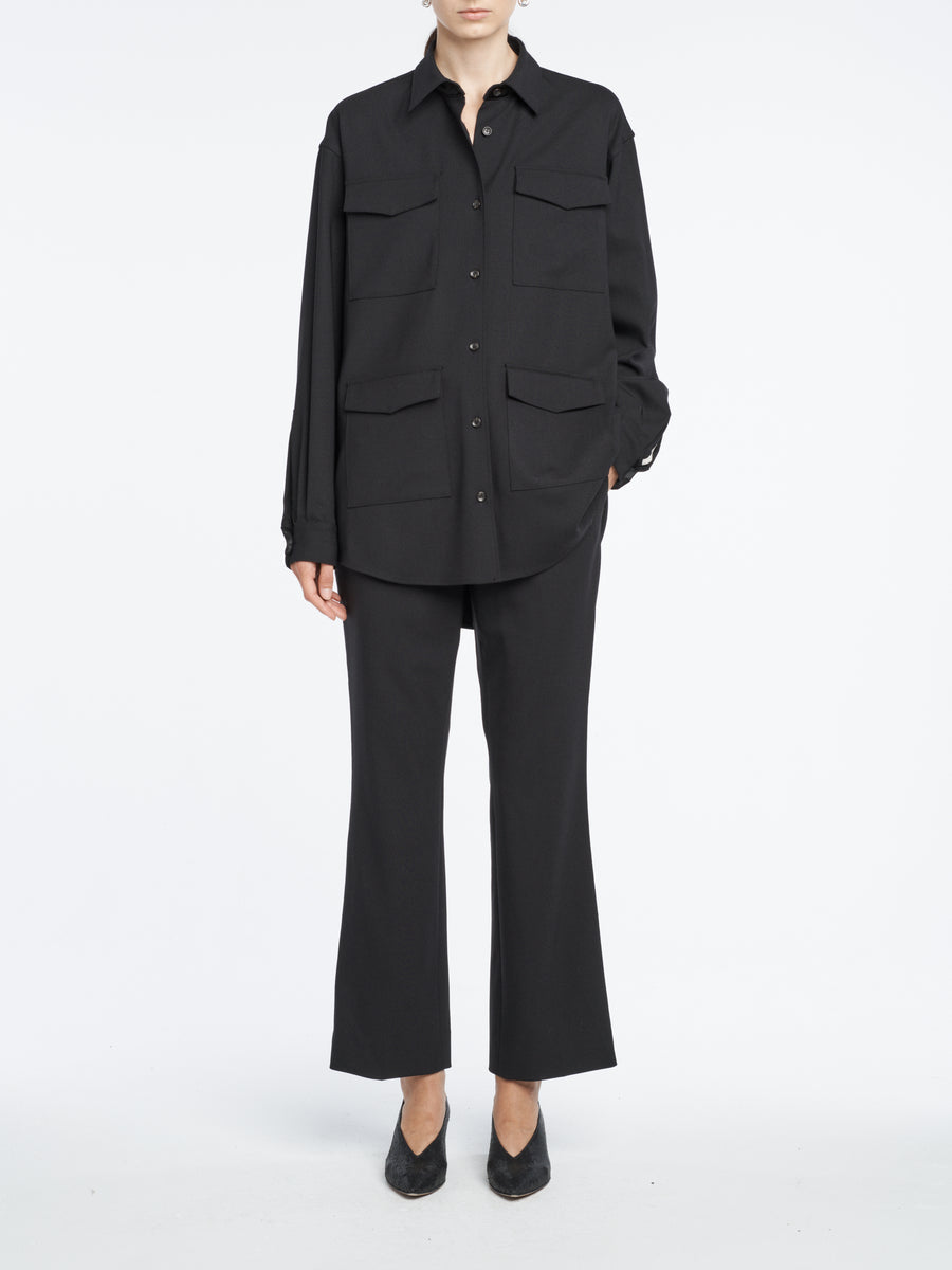 Our Signature High Waisted Crop Trouser is made in super stretch Italian wool certified by the Responsible Wool Standard (RWS) for an incredibly comfortable, flattering fit. Featuring a high waist, slash pockets and a slight flare at the bottom of the leg.