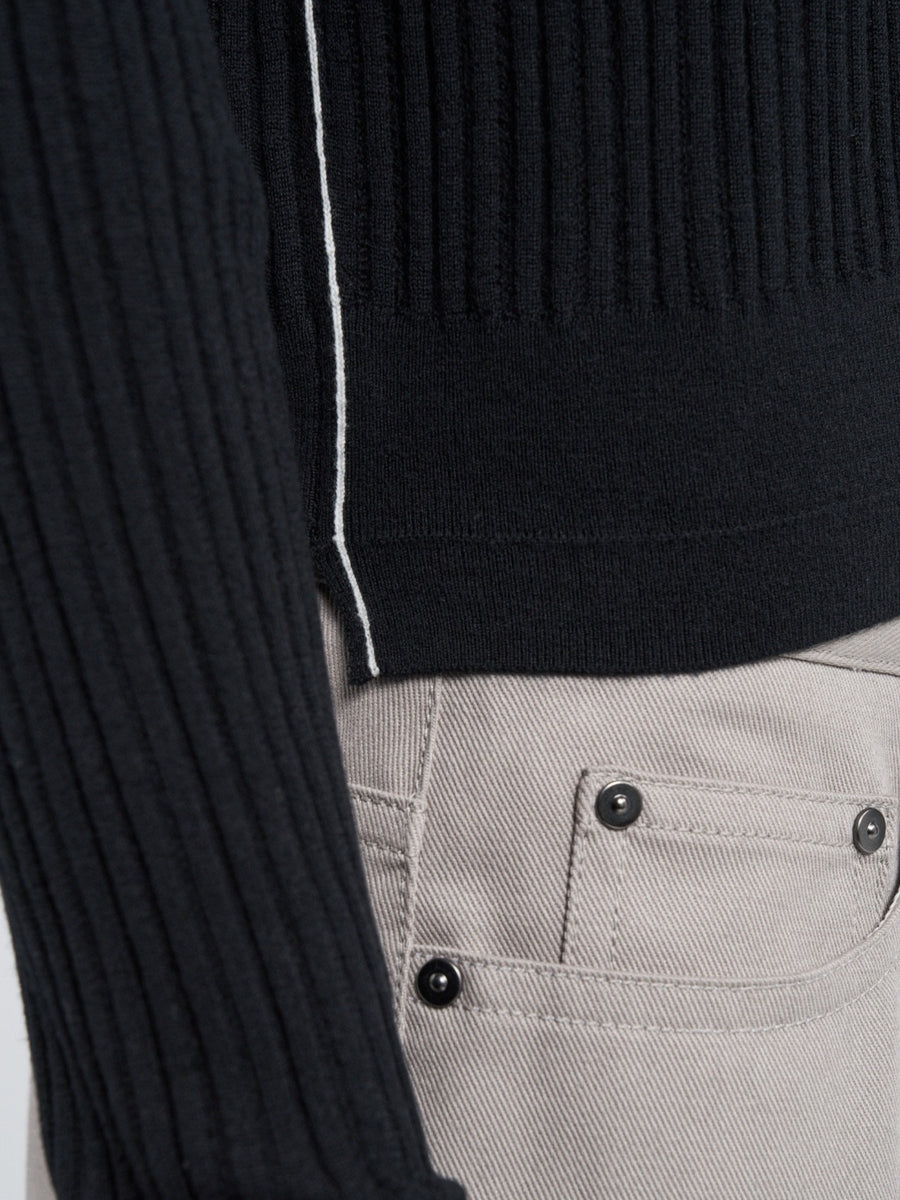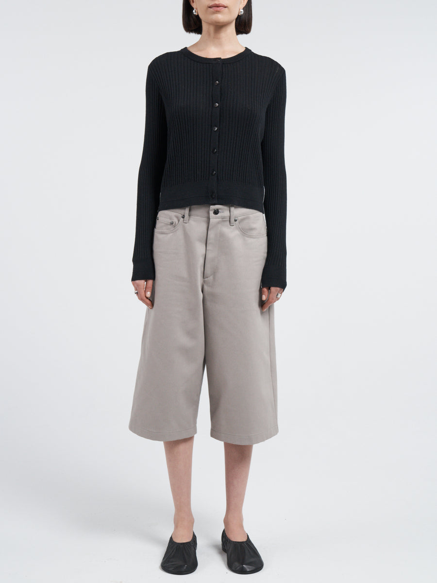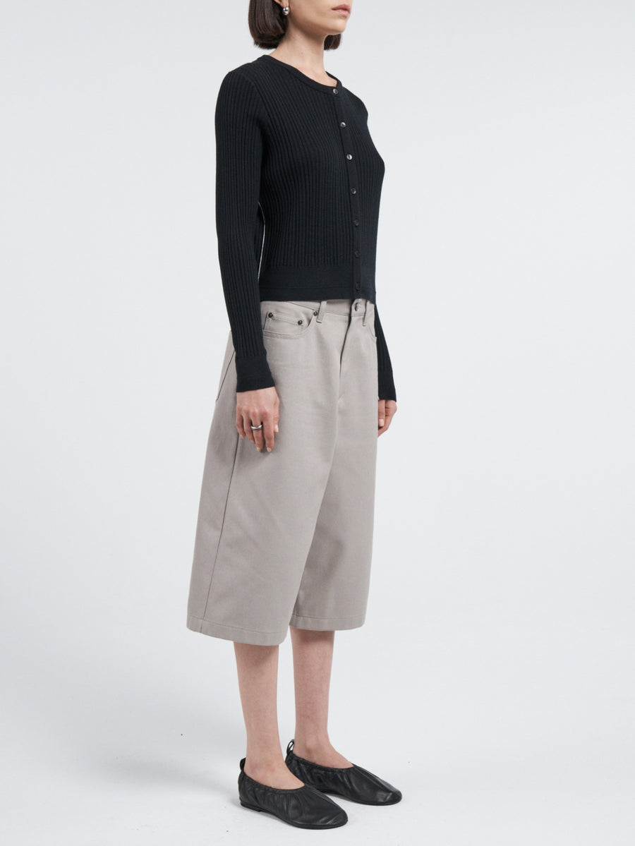 Knit from our classic responsible fine merino wool in black, this petite cardigan combines a classic fit with a soft, luxurious feel. The pointelle knit creates a geometric, lace-like pattern with delicate small holes. Perfect for layering, this piece is fastened with Biodegradable Buttons.