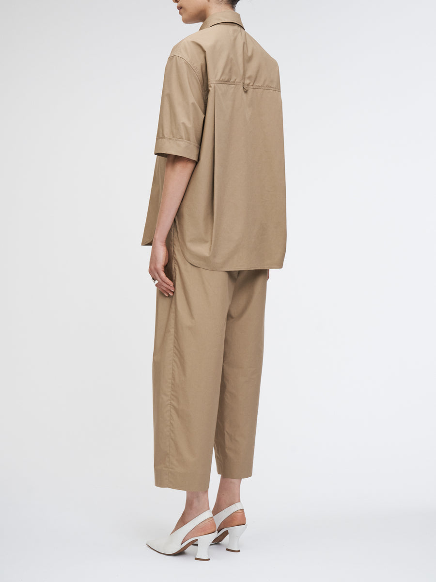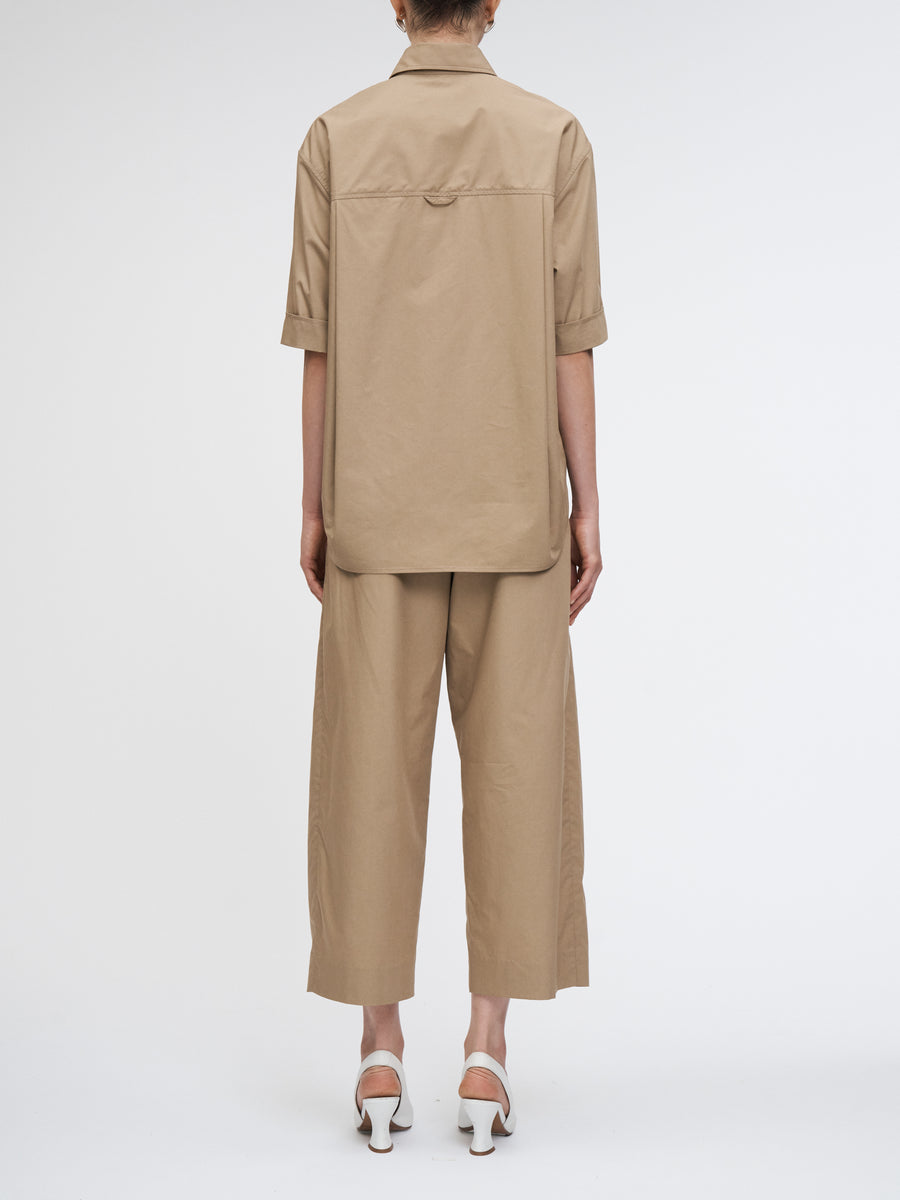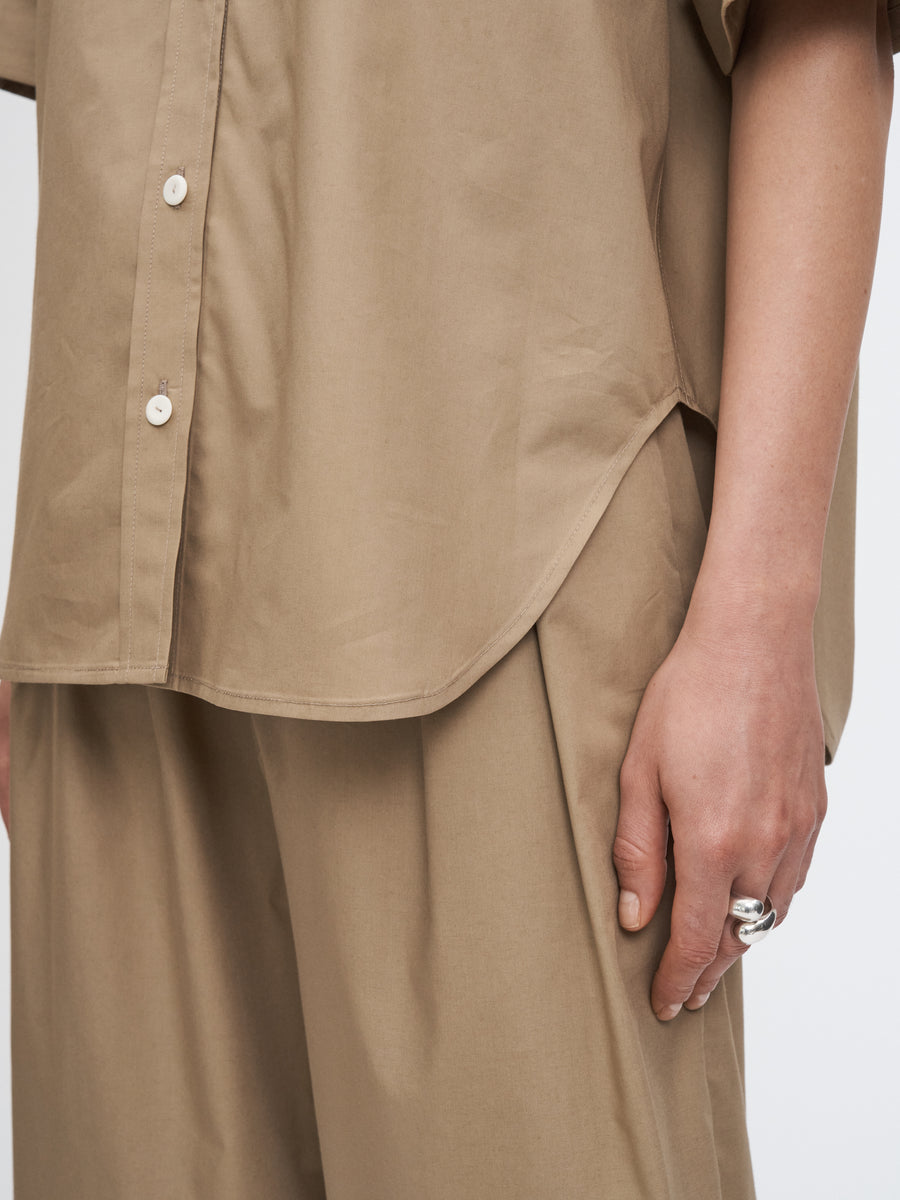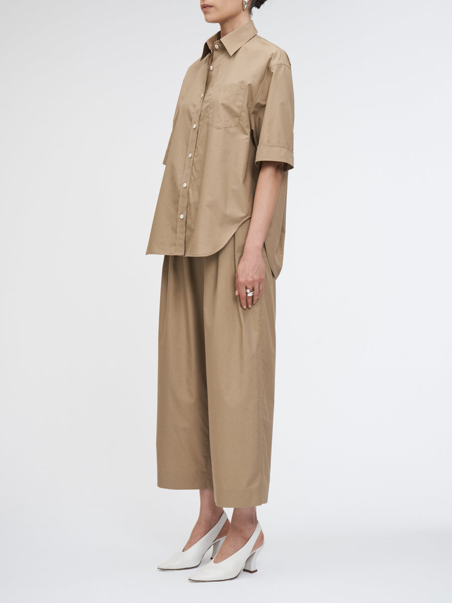 Crafted from organic Japanese cotton in a rich walnut hue, this menswear inspired oversized shirt is a wardrobe staple. With the same cocoon-like silhouette as our classic oversized shirt, this version is designed with elbow-length cuffed short sleeves, offering a relaxed, airy fit.