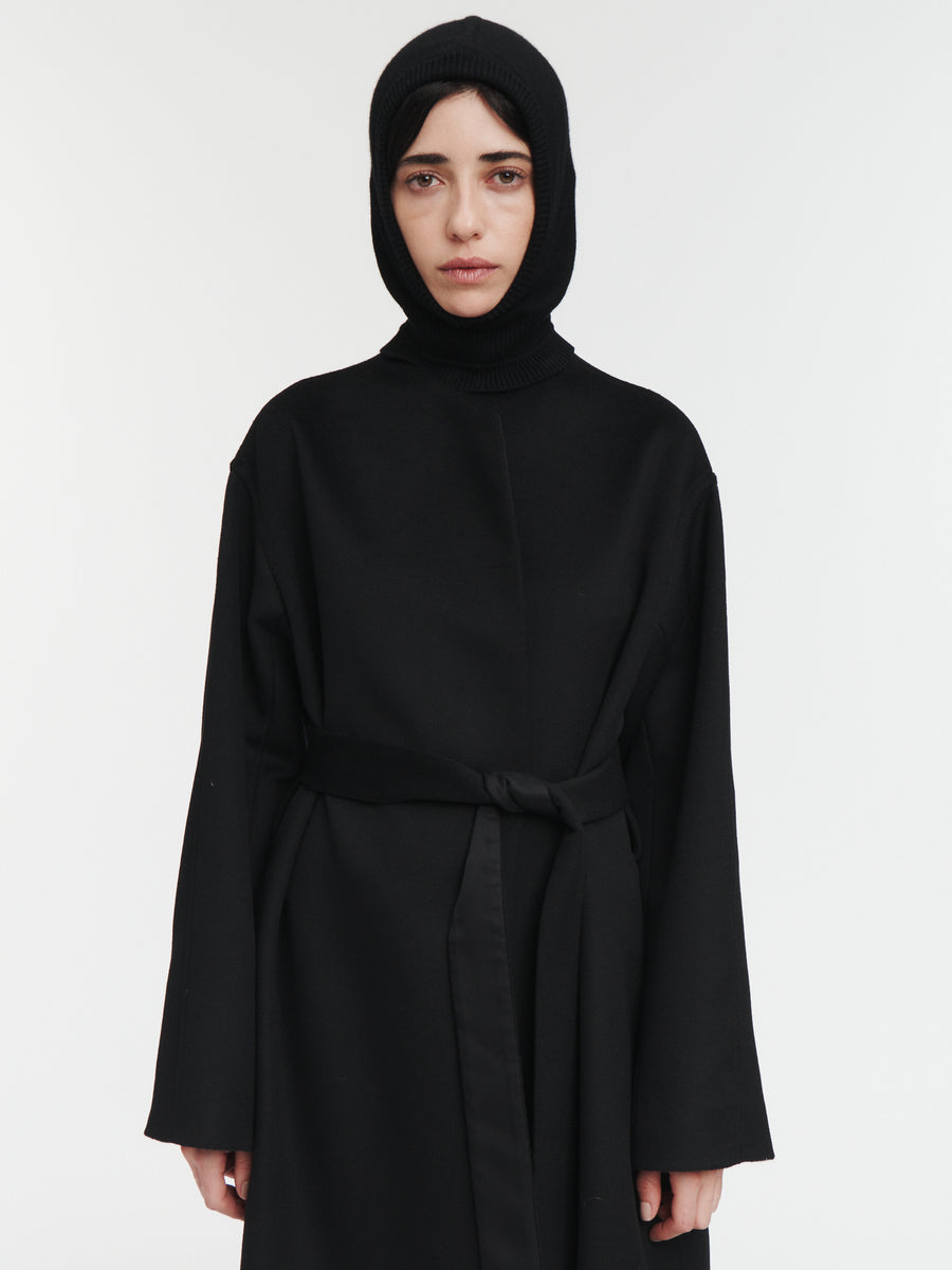 The Snood in Black is a pull on style made in our signature Italian 50% recycled cashmere and 50% organic cotton blend.