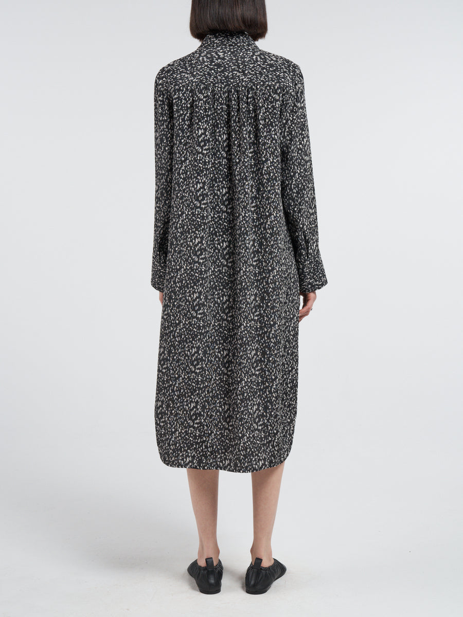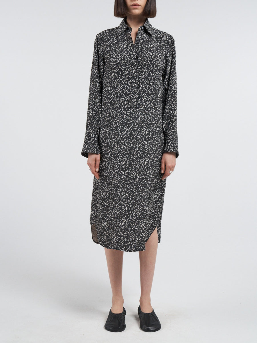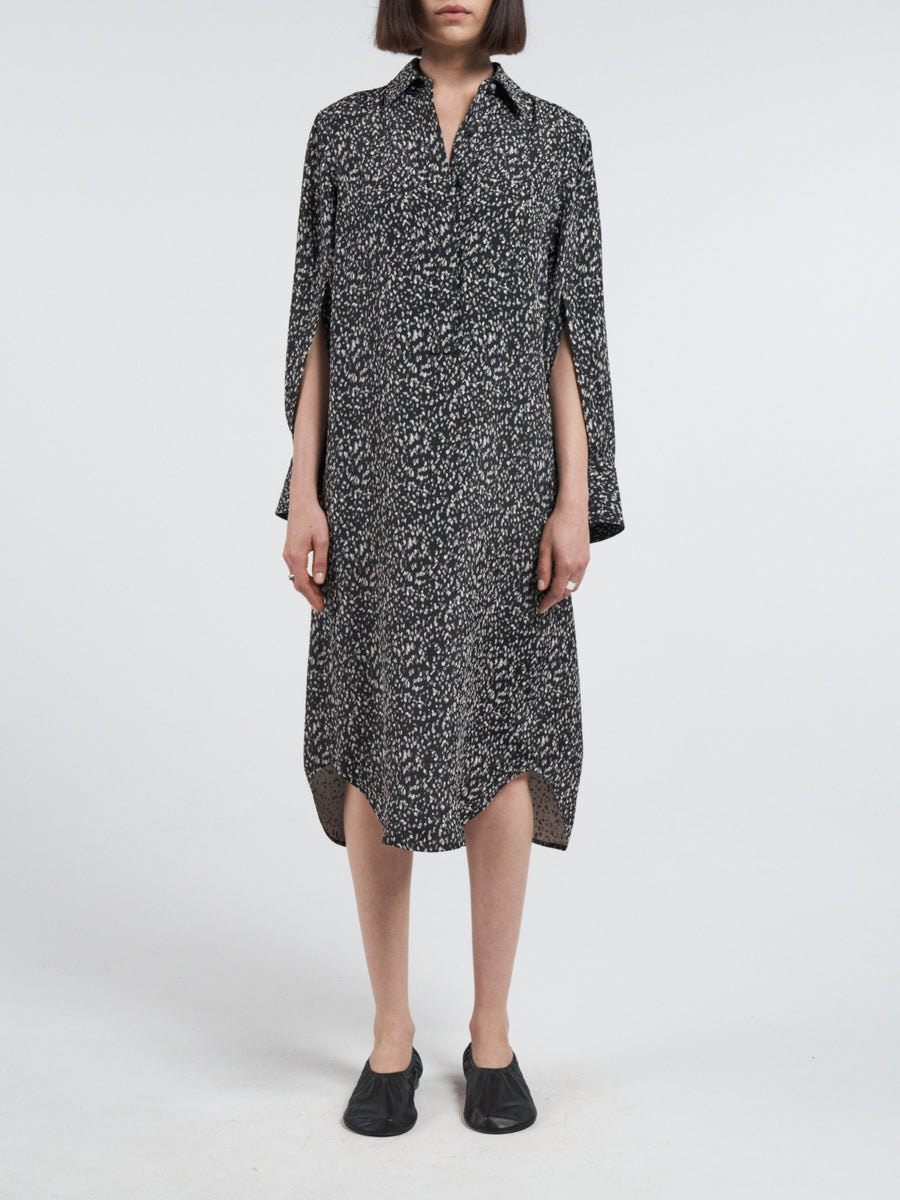 Split Sleeve Shirt Dress in Black Pebble Jacquard