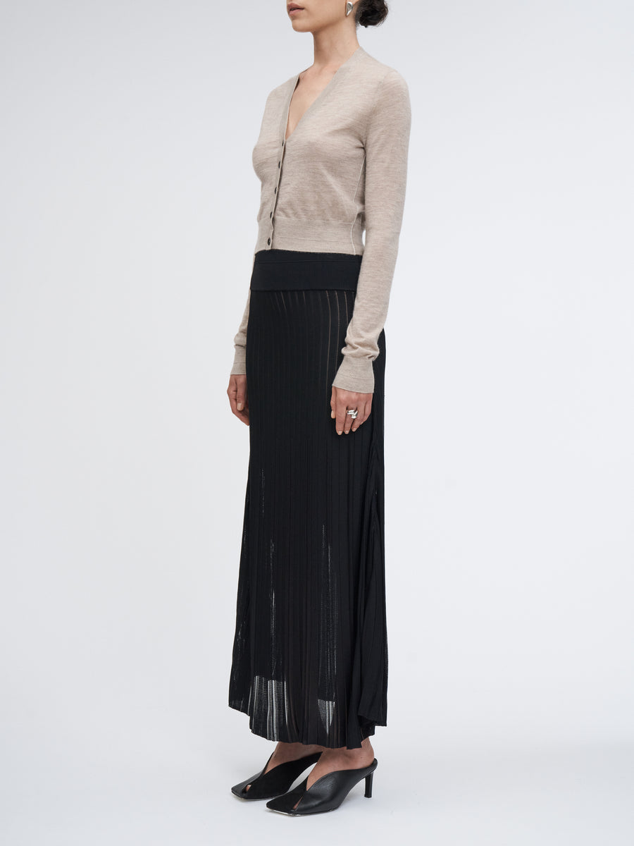 Crafted in FSC-certified viscose, this variegated pleat skirt features pleats at the waistline, creating a fluid silhouette. The subtle transparency of the skirt adds a delicate touch, while it flows with movement for an airy effect.